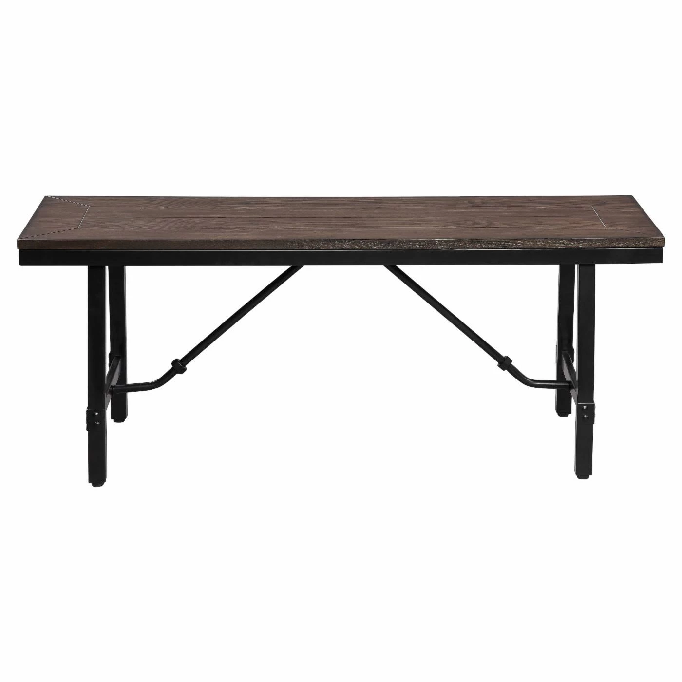 The industrial chic Acme Furniture Mariatu Dining Bench has a vintage style to enhance any space. The design aesthetic of this handcrafted bench includes a metal frame in a black finish. A rectangular wood top in an oak wood finish contrasts nicely.