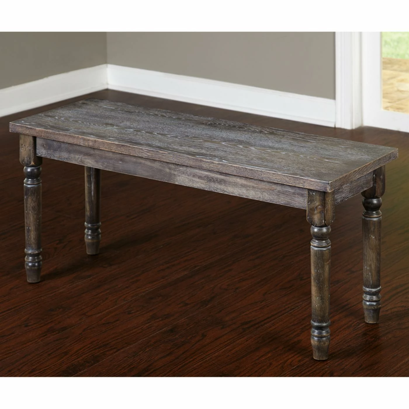 Try the Burntwood Bench for a slick new take on dinner seating! Rustic gray wash over cool engineered wood lends a light appearance to your dining room, as well as the matching Burntwood Dining Table. Details like the tulip turned legs and the natural wood grain make this piece right at home in your thoughtfully decorated abode. Seats two.