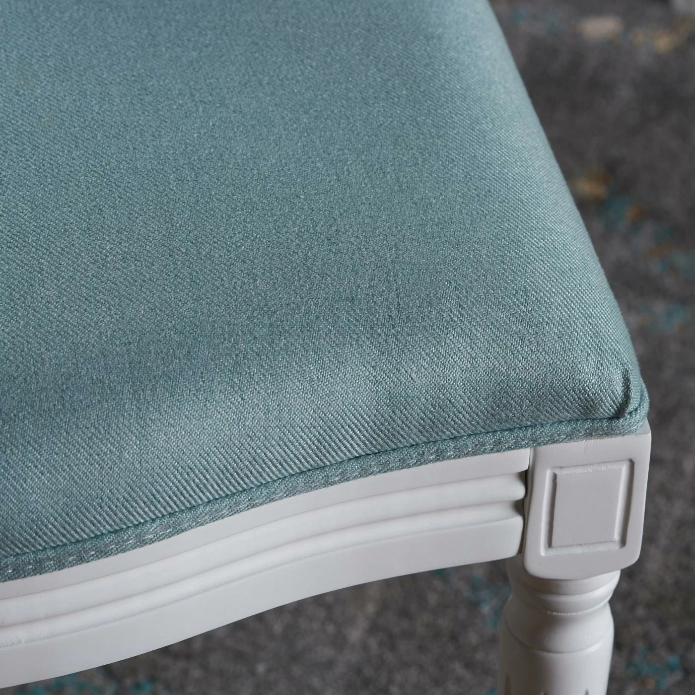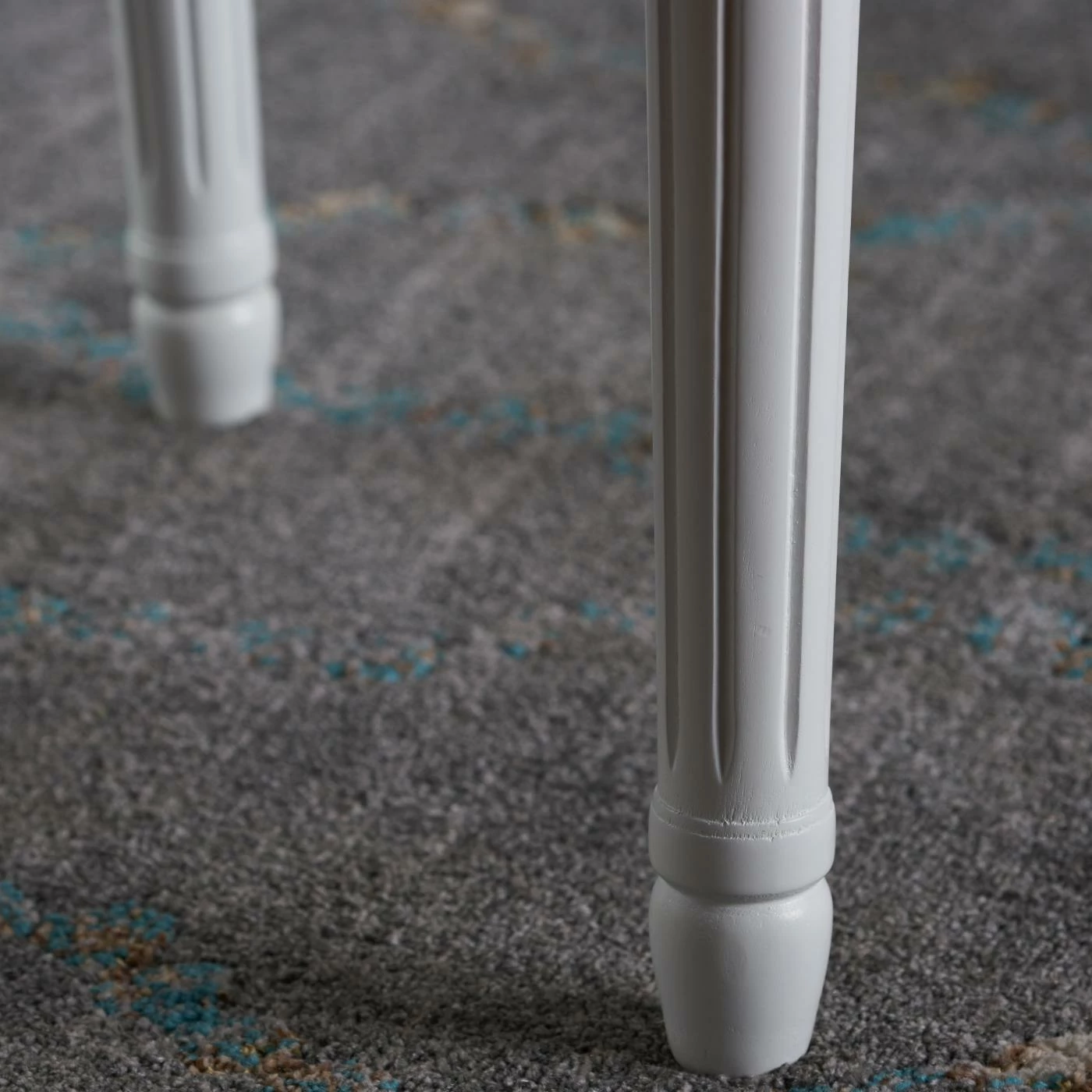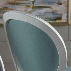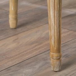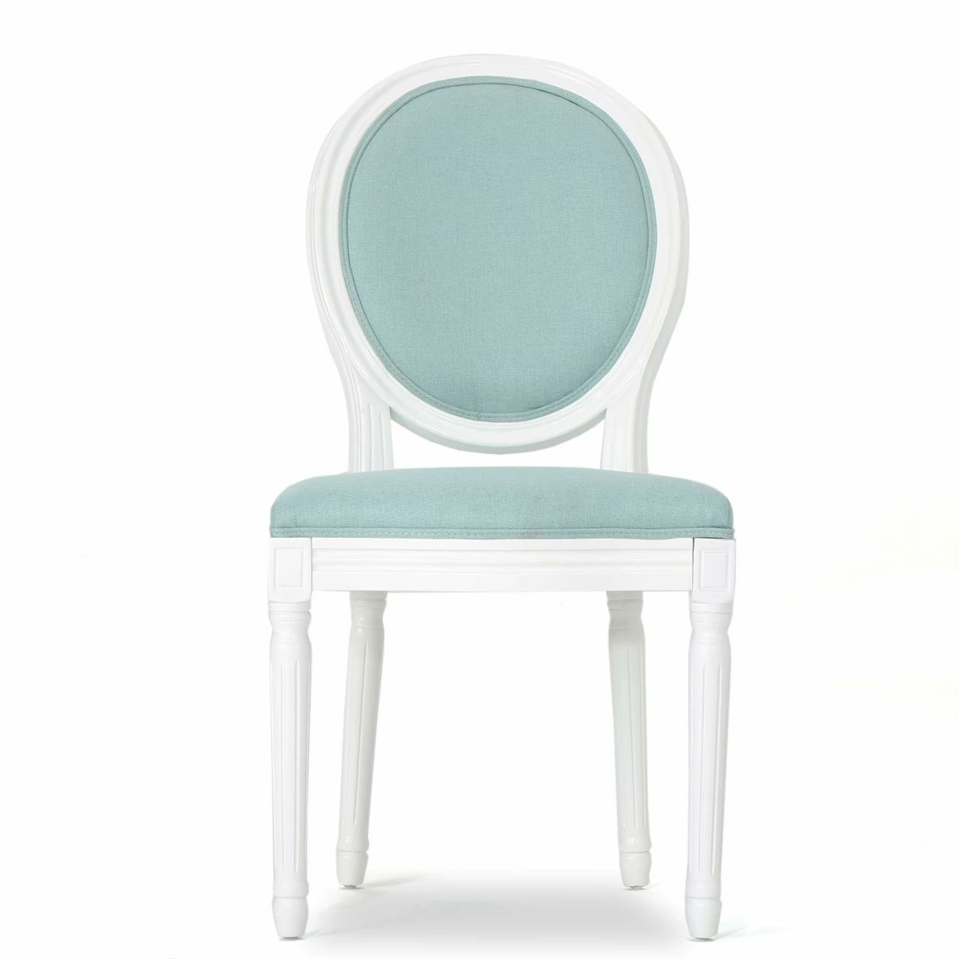 Decorate your dining room in elegant old-world style with the Phinnaeus Oval Back Dining Side Chair – Set of 2. Intricate carvings and a washed distressed finish give the solid rubberwood frames of the dining chairs the visual appeal of authentic antiques. Foam padding and crisp polyester fabric cover the round backs and deep seats for added comfort.