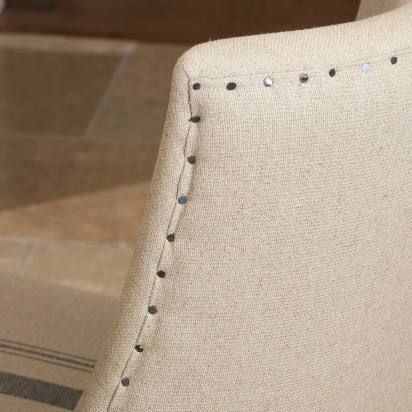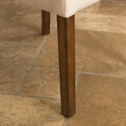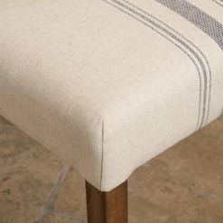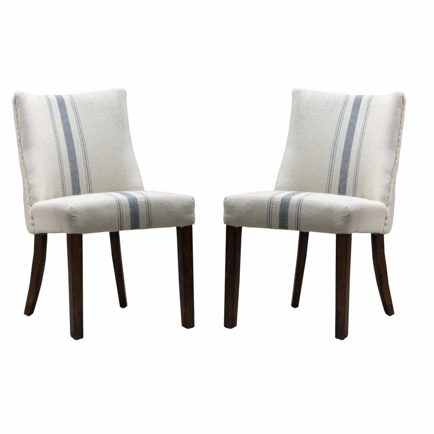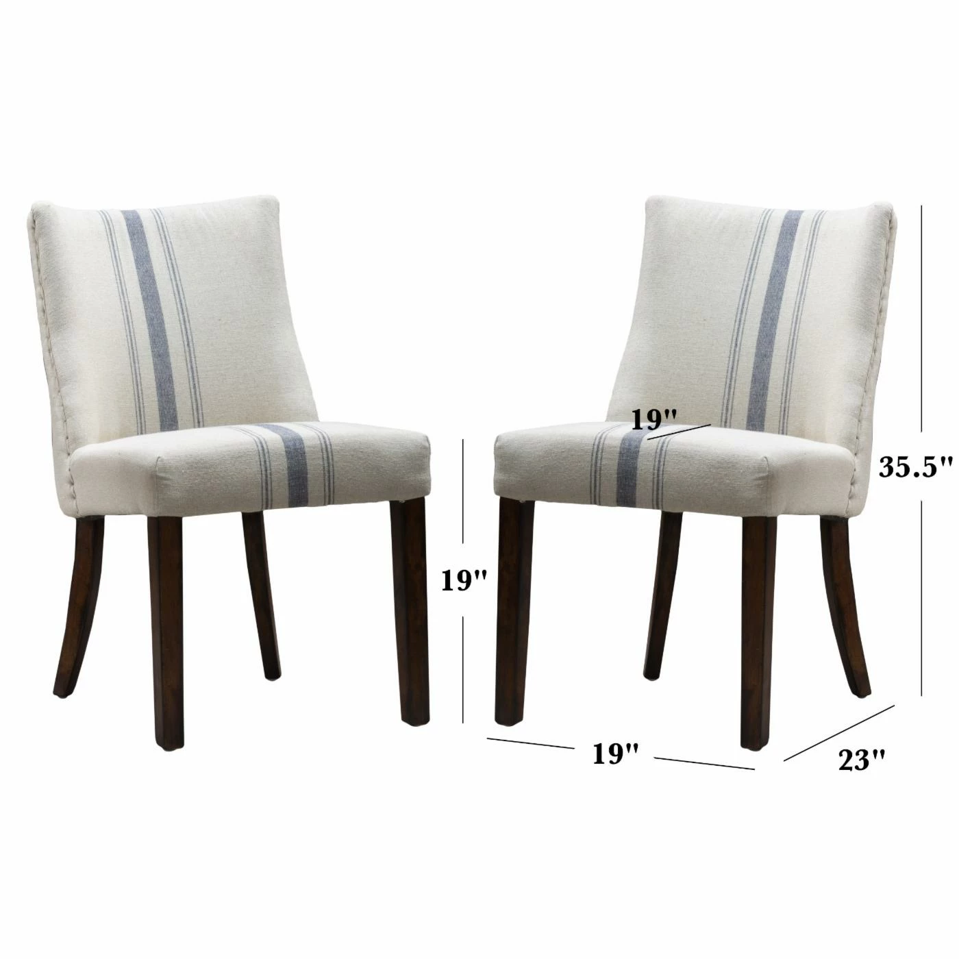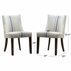 Built for comfort, the Dolcetto Parsons Dining Chair – Set of 2 offers generous cushioning at the seat and back for a relaxed experience that goes beyond the kitchen table. The contemporary styling not only brings a refreshing update to meal time but would also go well in the living room, bedroom, or office. Each chair is crafted from a sturdy hardwood frame with rich brown-finished front legs and flared back legs capable of supporting up to 250 pounds. Both chairs also flaunt cool white linen upholstery with off-center gray stripes and decorative side stitching. No assembly is required.