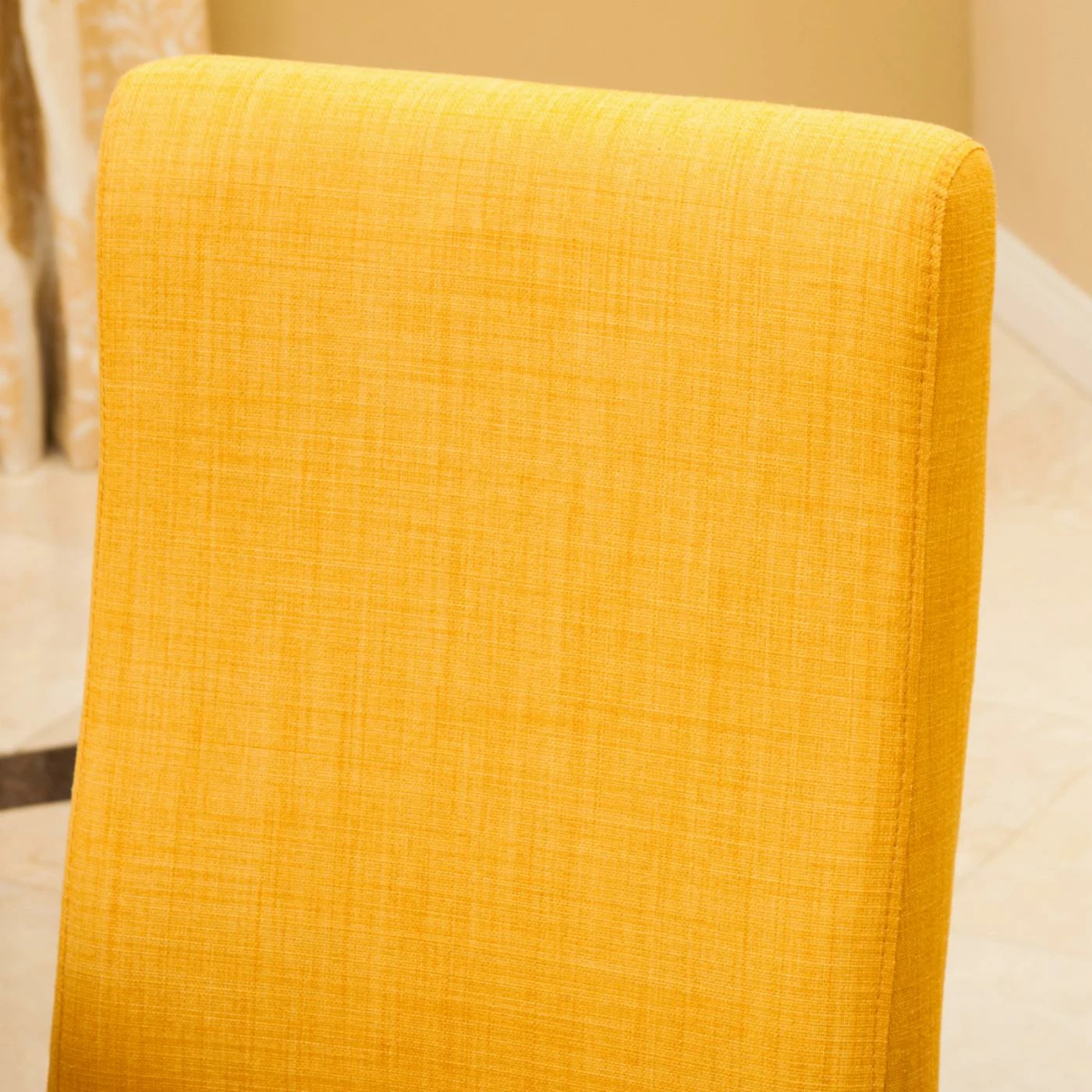 An excellent selection for the host who loves to entertain in style, the Liberty Parsons Dining Chair – Set of 2 complements formal and casual arrangements and is so luxuriously comfortable that it’s sure to inspire guests to linger a little longer at the table. Each chair is expertly crafted from solid rubberwood in an all-black finish with tapered legs in the front and flared legs behind. The well-padded seat and back are upholstered in soft but durable polyester fabric available in your choice of select colors. For a contemporary touch to a classic design, the chairs also flaunt ergonomic contours for your comfort. Some assembly is required. Sold in pairs.