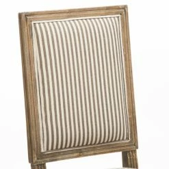The aristocratic Madaline Dining Chair – Set of 2 adds a sophisticated touch to any table. Each chair is expertly crafted from sustainable planation-grown hardwood in an aged oak finish and features carved detailing along the frame and elegantly turned legs. The seat and back are well-padded for your comfort and come upholstered in soft but durable polyester decorated in dynamic beige and khaki stripes. These chairs are built to last, boasting the durability to support up to 250 pounds each. No assembly is required.