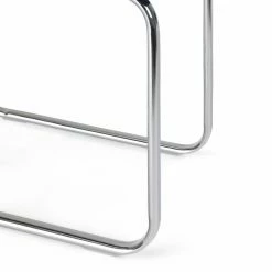 - Chrome frame with navy blue seat and back