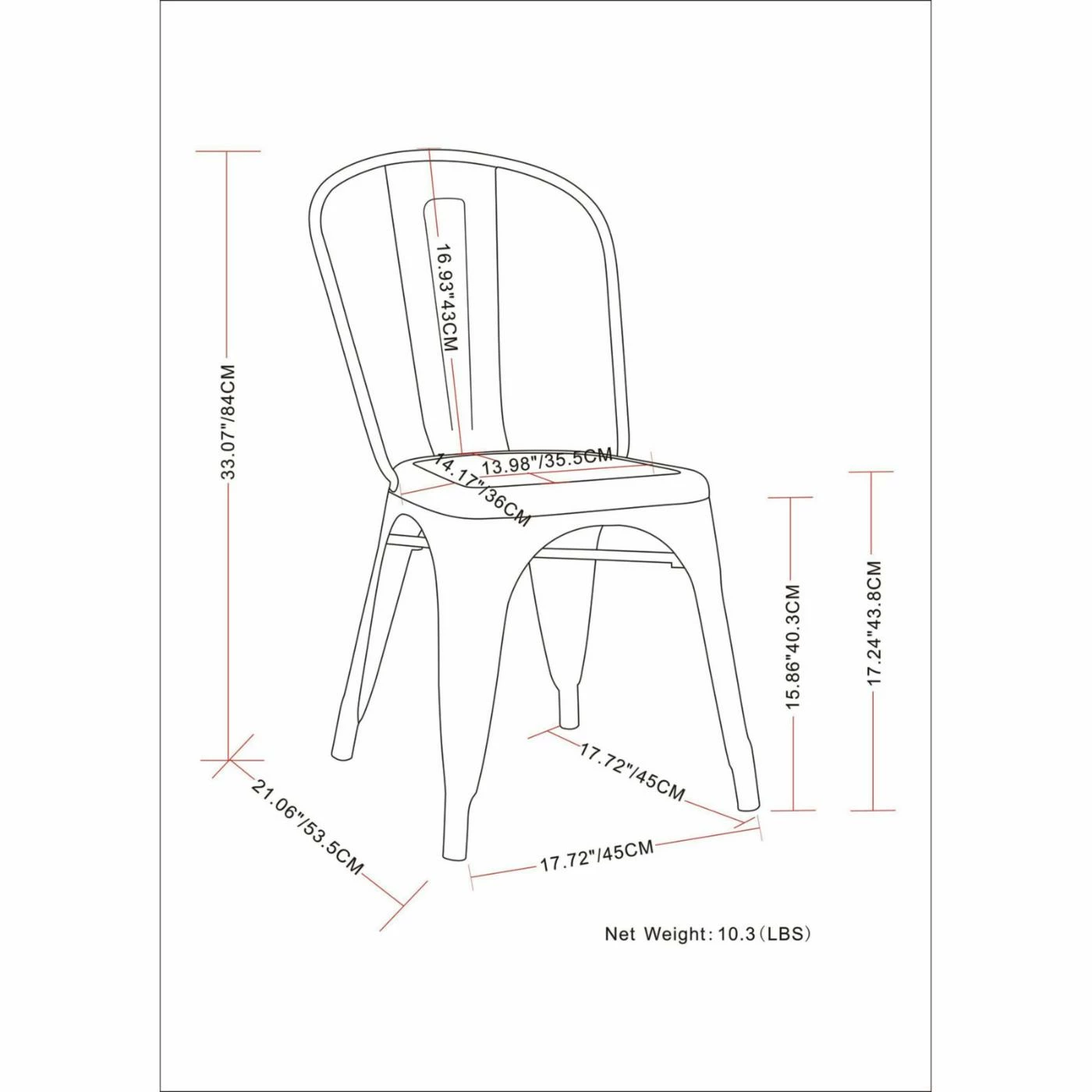 - Each chair measures 17.72W x 21.06D x 33.07H in.