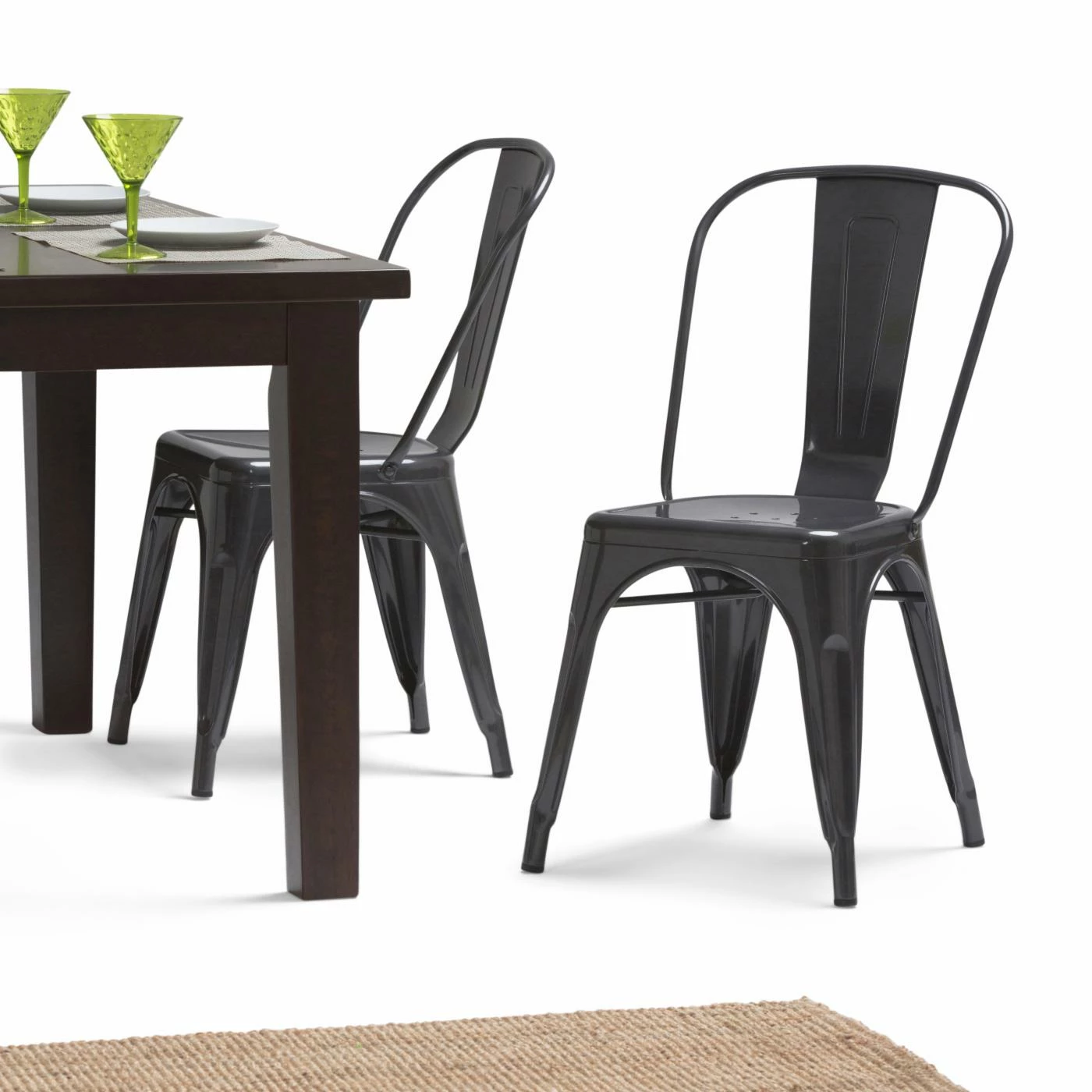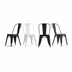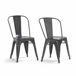 Inspired by the iconic metal utility stools of yore, the Brooklyn + Max Keiran Dining Side Chair – Set of 2 offers a look that has truly stood the test of time. Iron sheeting and tubing is treated to a glossy powder coat finish. Backrests are curved for comfort, and the seat is cross-braced for stability. These lightweight, stackable chairs are ideal for flexibly adding seating to your next gathering.