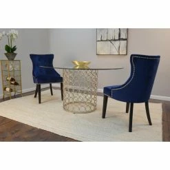 Add a little elegance to most any meal with the Carolina Chair & Table Co. Bartlett Tufted Back Velvet Dining Chair. Hand-placed button tufts on the back combine with tapered, gently curved legs and hand-applied antique brass-finished nailhead trim to create a look you (and your dining room) will love. The upholstery is crafted of navy blue velvet that complements the espresso finish on the hardwood legs.