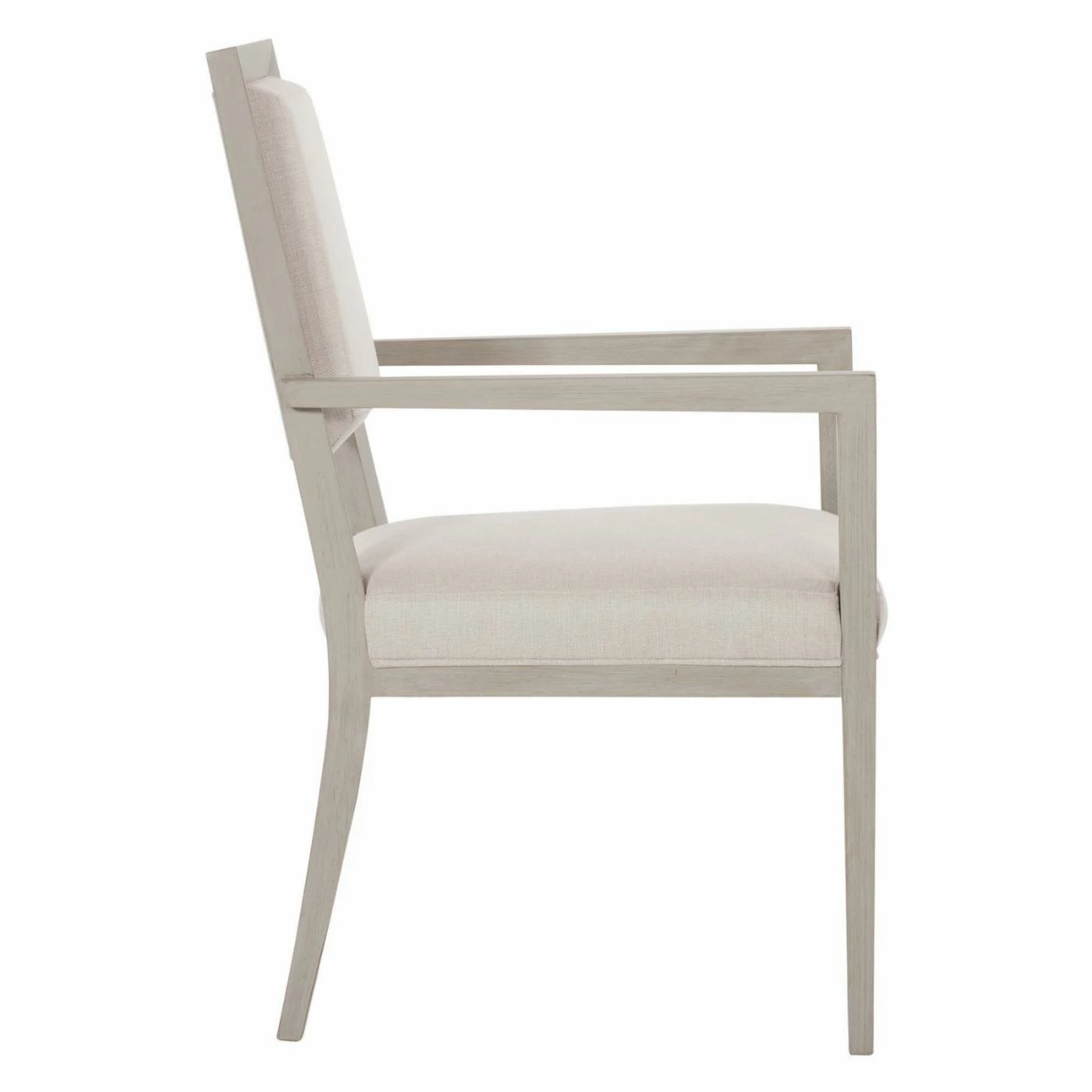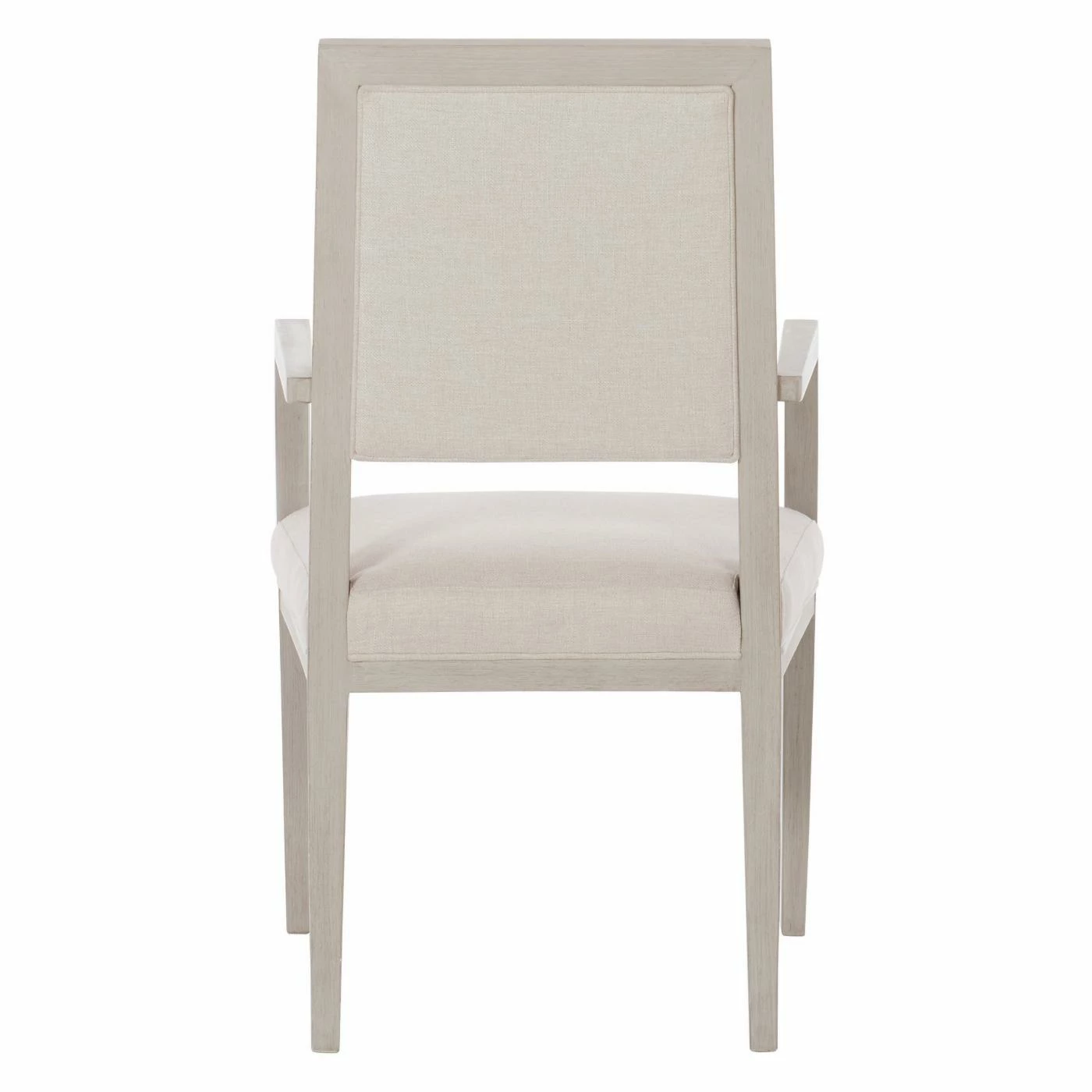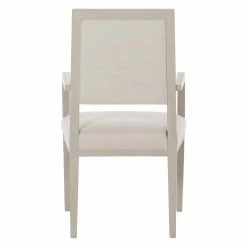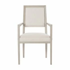 The Bernhardt Axiom Arm Chair‘s soft and soothing color palette lends your dining room or kitchen an inviting feeling. The poplar wood frame comes in a Linear Gray while the textural fabric upholstery comes in off-white. The transitional piece uses modern craftsmanship to blend materials and dimension into one intriguing design. Pair this chair with the other items in Bernhardt’s Axiom Collection.
