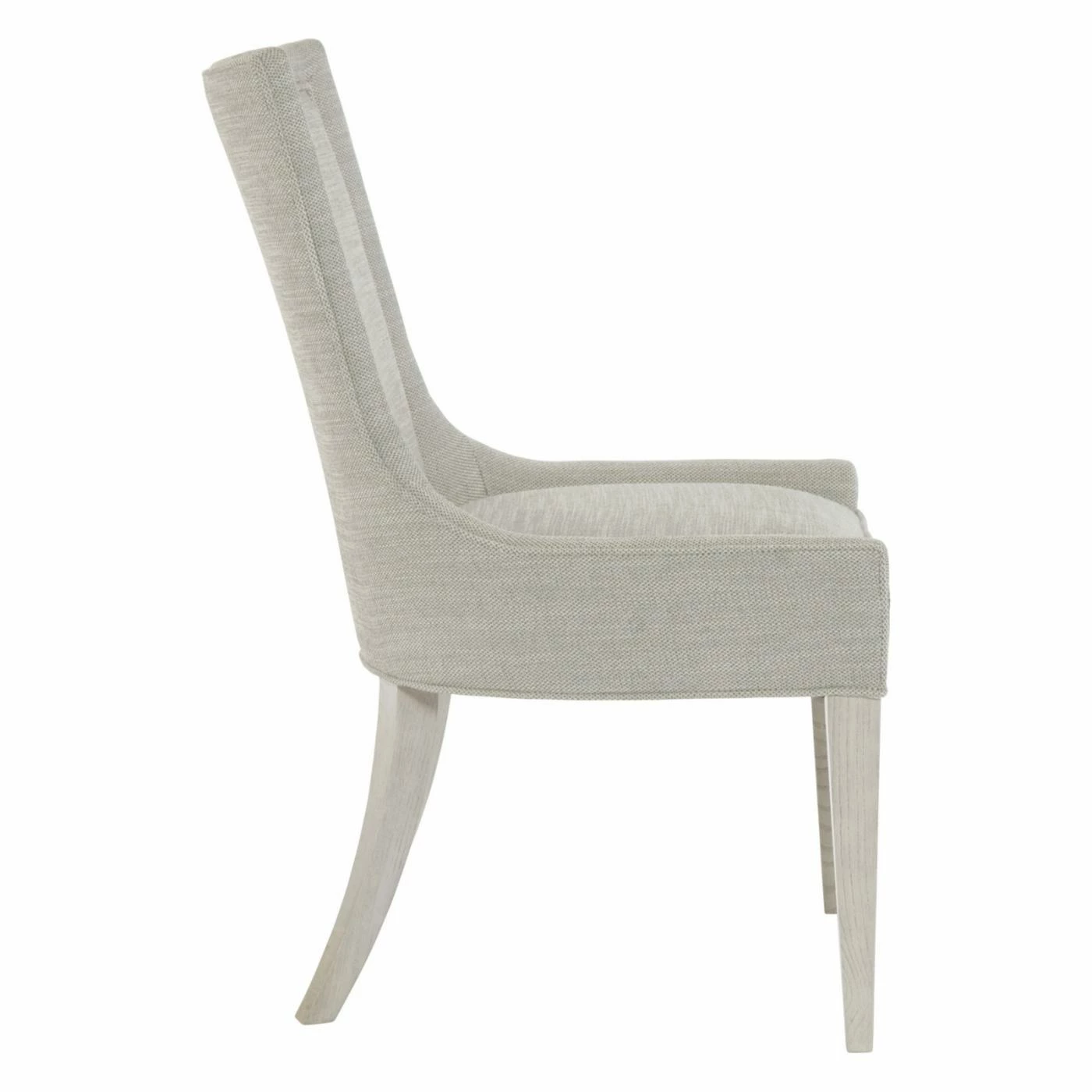 Elegantly simple styling makes the Bernhardt Criteria Upholstered Wingback Dining Arm Chair a standout. There’s more to the wood legs than meets the eye at first glance: they feature quartered ash veneers with a heather gray finish. Gray upholstery covers the entire front and back of the backrest, as well as the cushioned seat. A welted outline adds definition to the seating side of the backrest.
