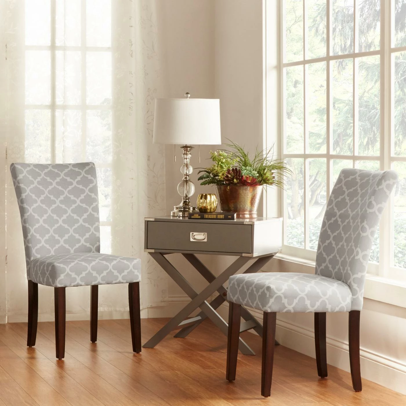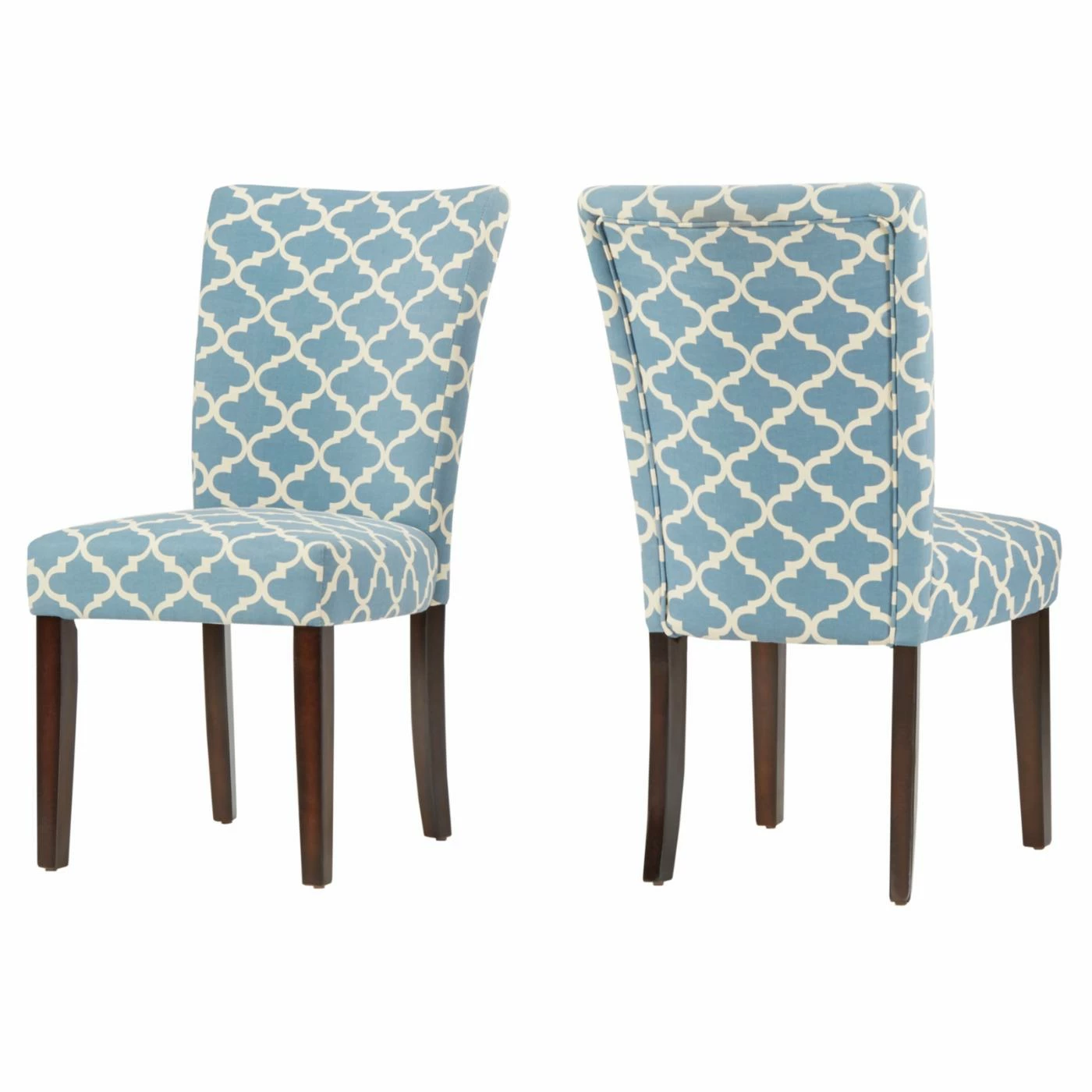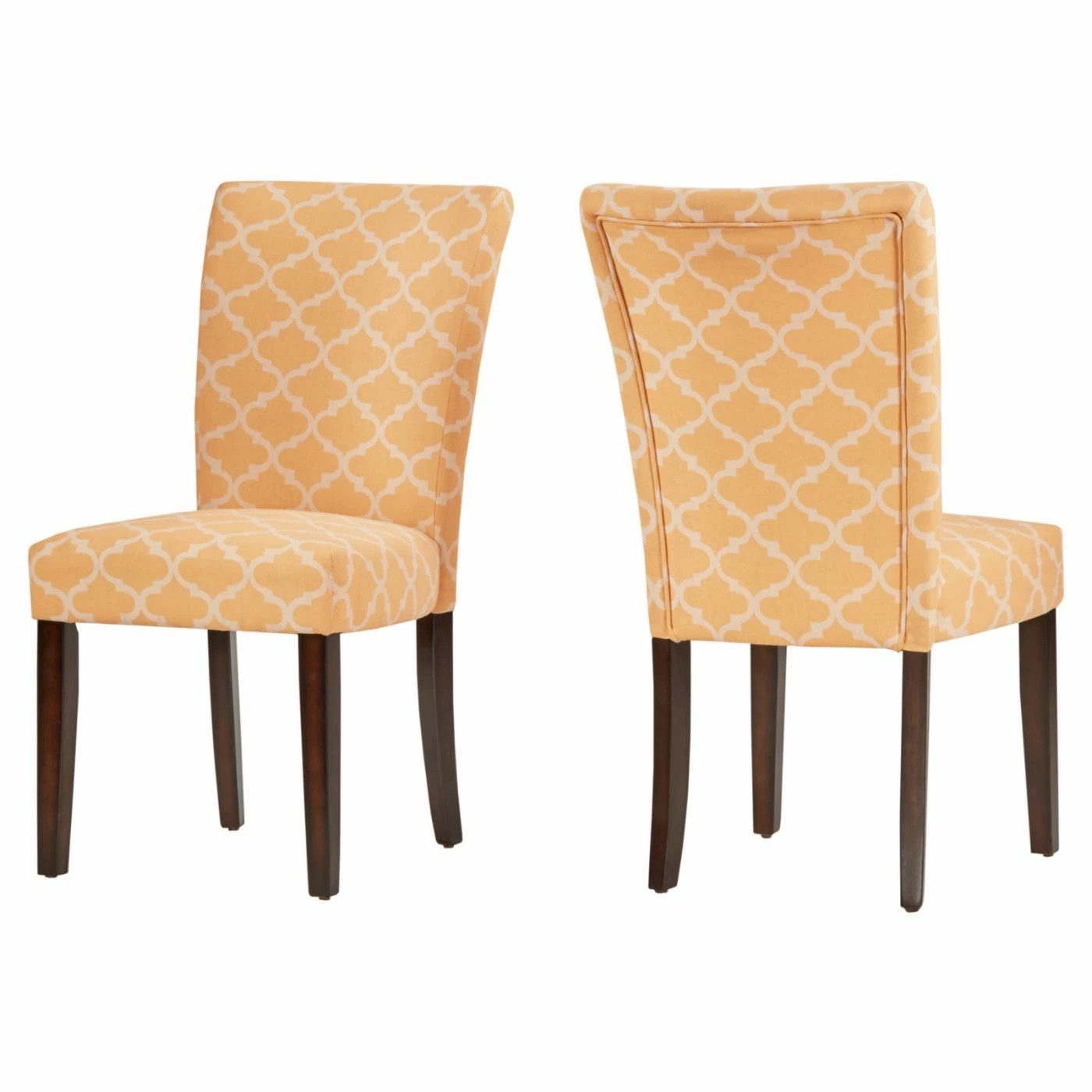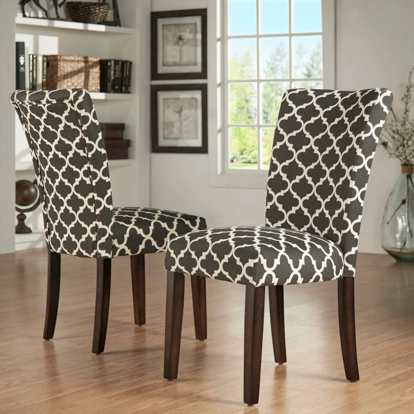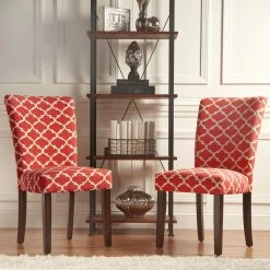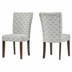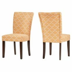Give your dining or seating area a touch of global elegance, compliments of the Chelsea Lane Espresso Parson Chair – Set of 2. The luxuriously soft chenille upholstery features a quatrefoil lattice inspired by Moroccan tile work. Crafted out of wood, the Parsons chairs can provide years of use in the dining room, kitchen, or living room. Wherever you use them, the spring-supported, foam-padded seats will ensure your comfort.