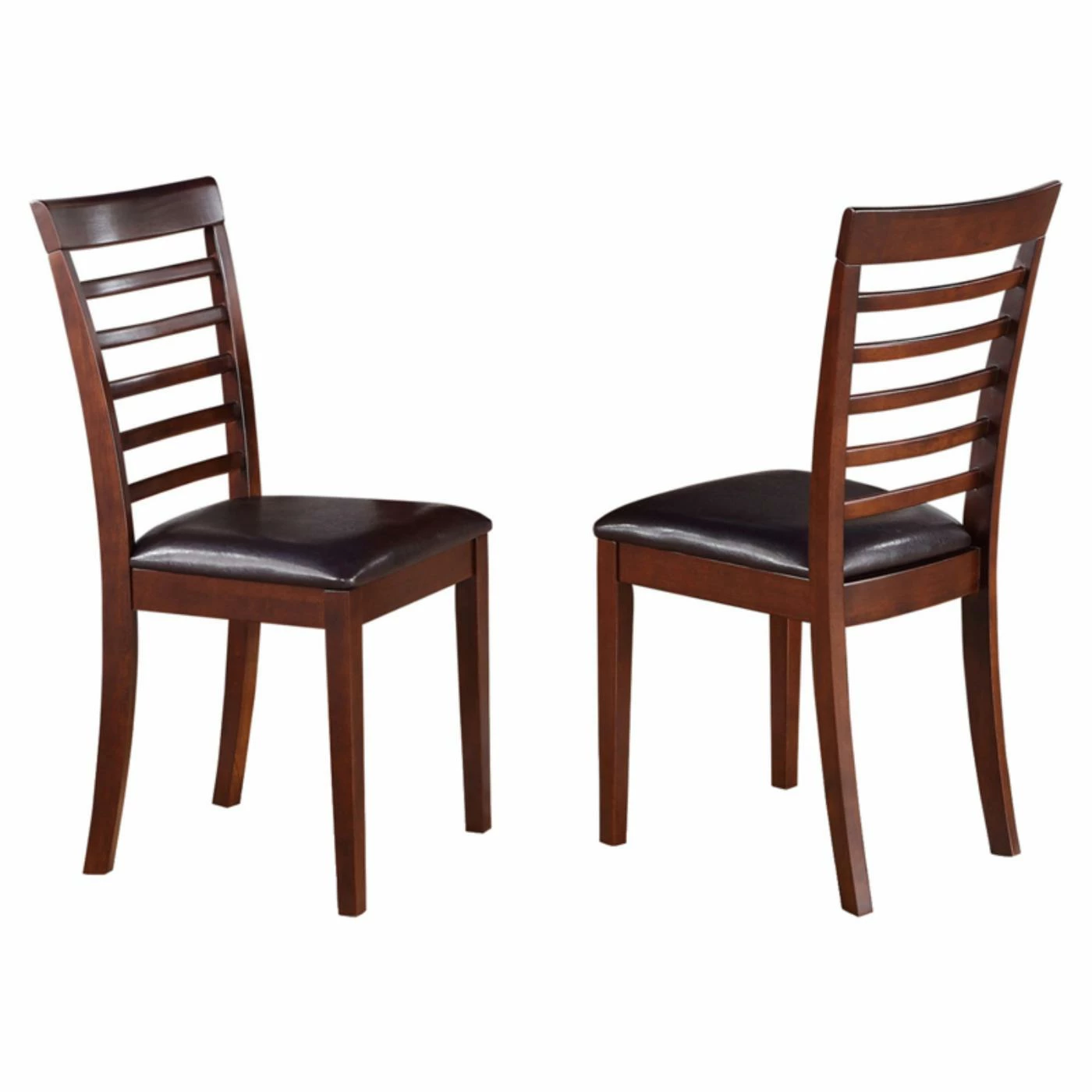 The transitional structure of this East West Furniture Milan Dining Chair with Faux Leather Seat – Set of 2 gives it visual appeal. Crafted of solid wood that’s finish in rich mahogany, these chairs showcase cushy seats covered in faux leather upholstery. Cleanly structured, the ladder backs on these chairs provide striking visual allure.