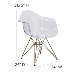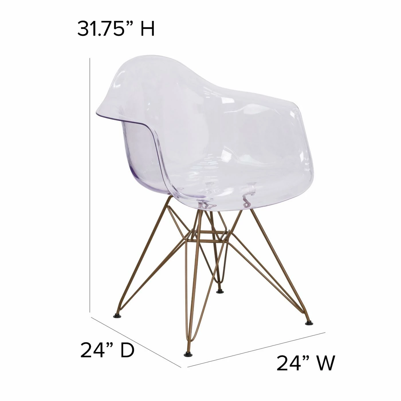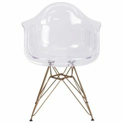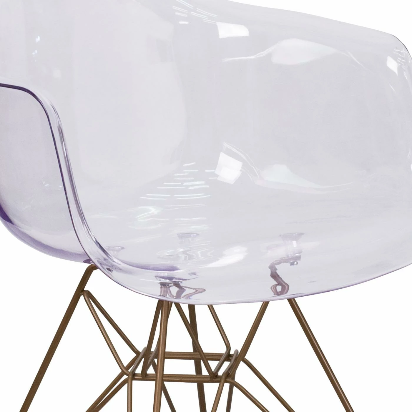 Bring a little contemporary glamor to your home with the Flash Furniture Allure Series Transparent Side Chair with Gold Frame. This accent chair features a waterfall-style acrylic seat leading down to a durable metal frame with a gold finish. Adjustable feet protect the floors.