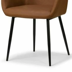 Dinner just tastes better when you eat it while sitting on the Glamour Home Alrik Upholstered Dining Arm Chair – Set of 2. A wide, spacious seat, armrests, and thick cushioning ensure the dining experience is a comfortable one. The faux leather upholstery comes in a rich caramel brown that is offset by contrasting zigzag stitching around the outside of the chair. The seat rests on top of black steel legs, slightly flared, with hidden floor protectors that prevent damage and scratches to your hard floors. You can also try this pair of chairs in an office or study. Regardless of where you place them, the chairs’ sophisticated shape is sure to elevate your space.