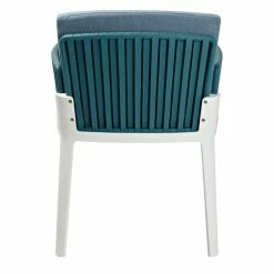 This Gold Sparrow Sunny Teal and White Two-Tone Dining Arm Chair – Set of 2 features removable fabric cushions. Made of acrylic/plastic, this set of two chairs is available in two-tone teal and white. The sturdy chair is ideal for indoor or outdoor use. Some assembly is required.