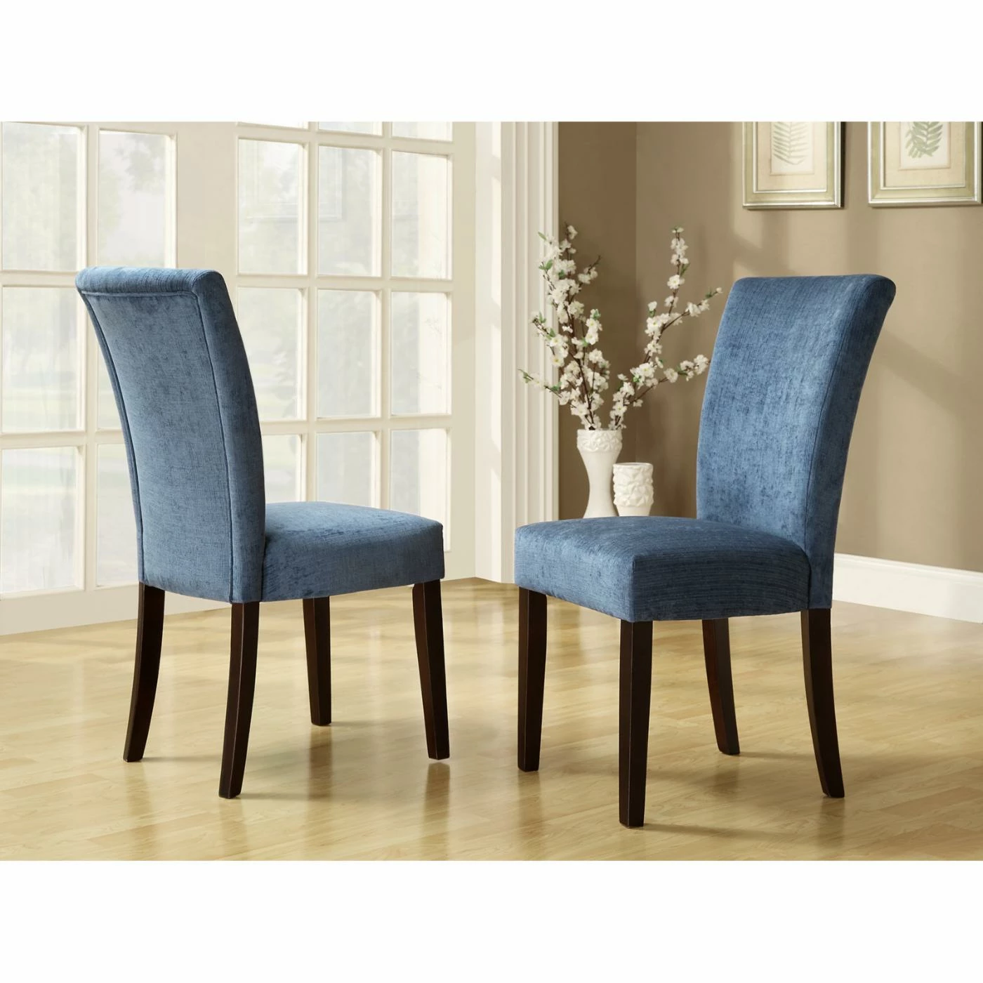 Distinctive blue and ultra soft, the HN Home Tyler Transitional Royal Blue Chenille Parson Chairs – Espresso – Set of 2 offers dinner guests a luxurious place to sit. This set of two parson’s style side chairs is crafted of rubberwood in a deep espresso finish. Royal blue chenille upholstery adds a pop of color to the spacious and padded seats and backrests.