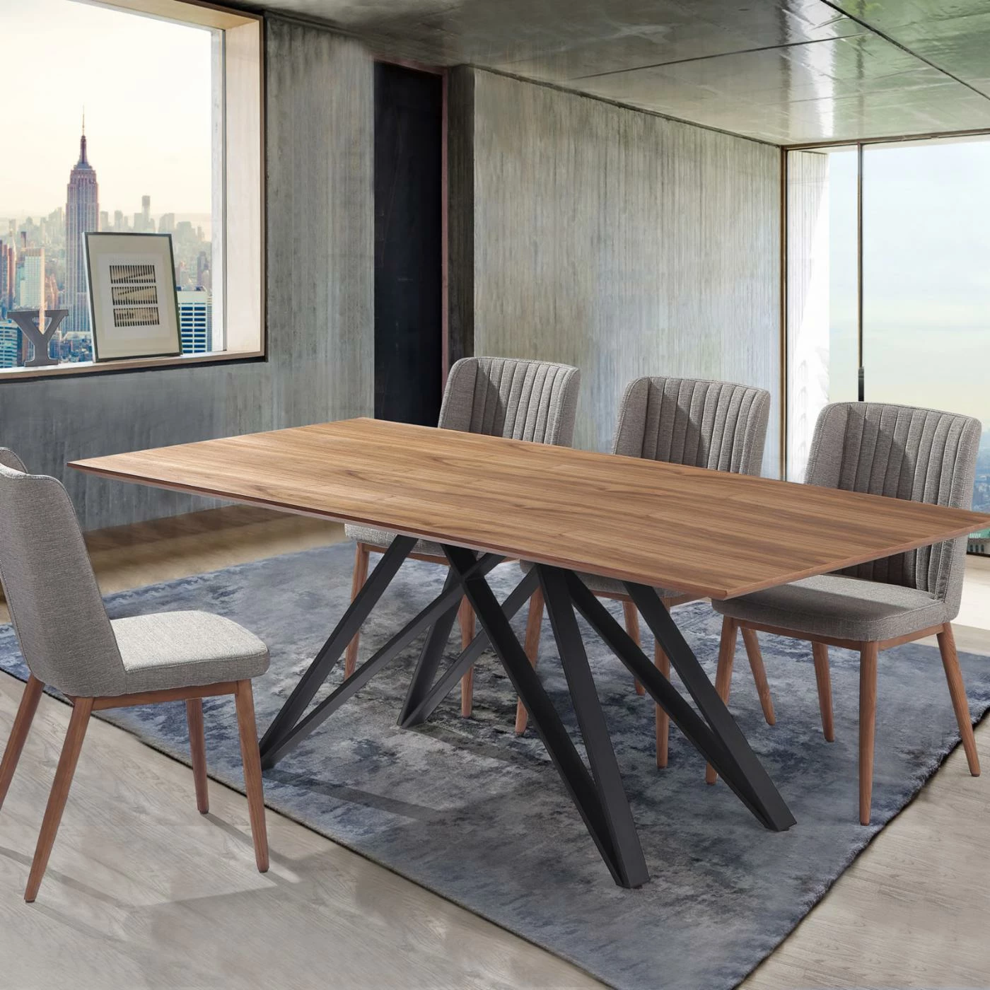 - Round legs with walnut finish