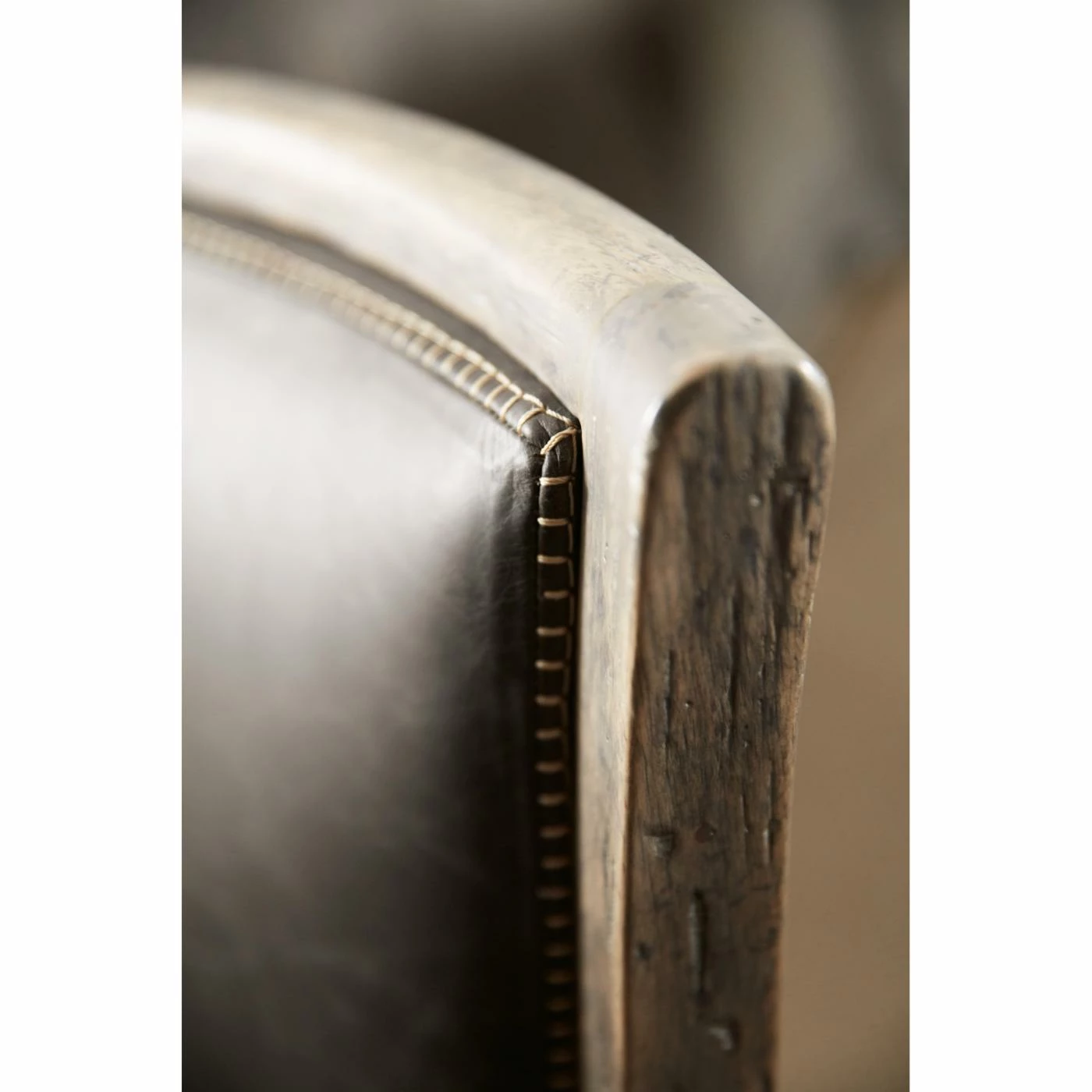 - Brown leather seating with distressed brown frame