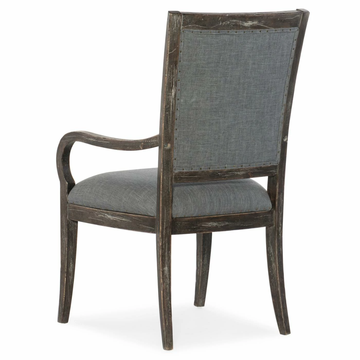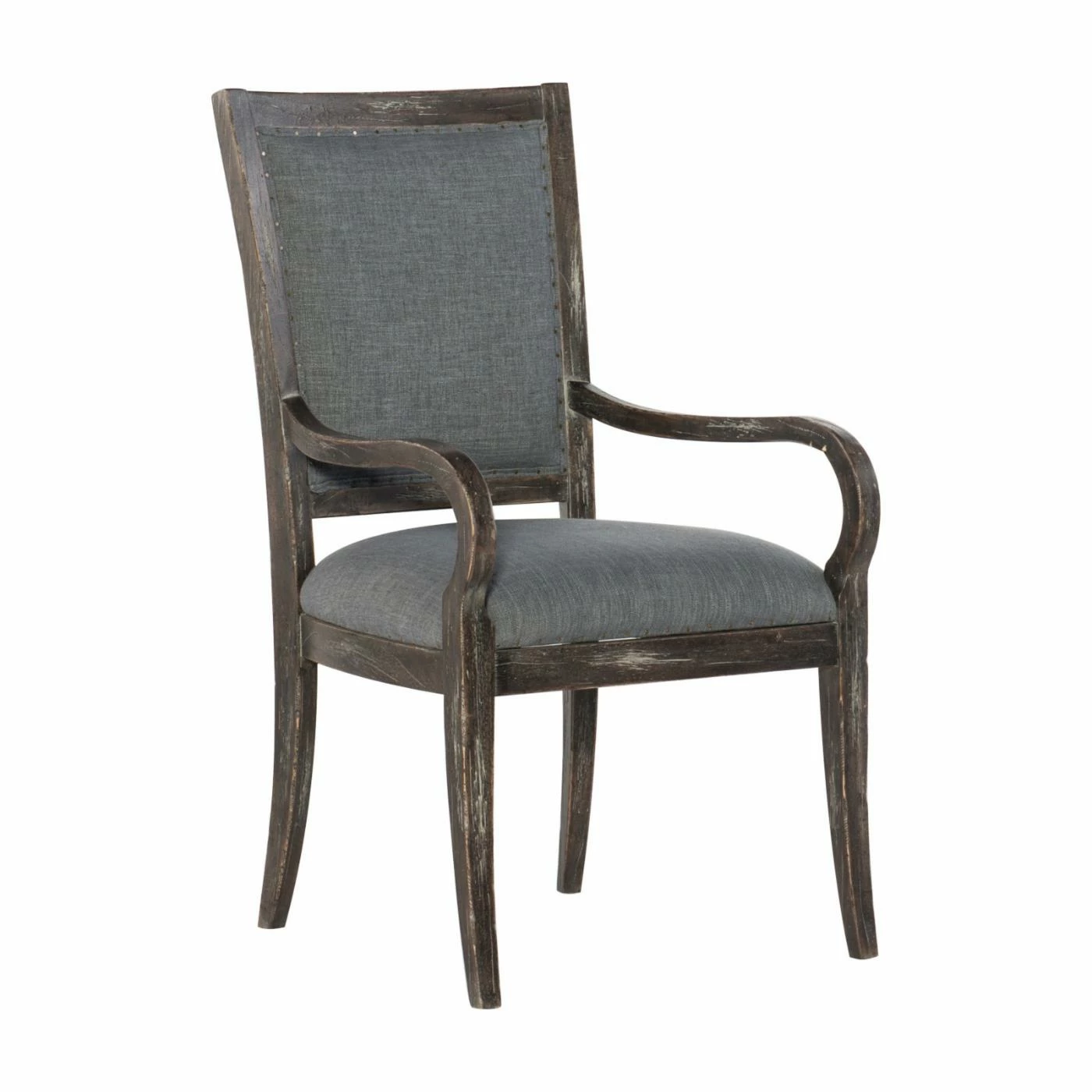 Sit back and enjoy your transformed living space with the Hooker Furniture Beaumont Upholstered Dining Arm Chair – Set of 2. The rich brown distressed wooden frame is accented with a soft blue-gray fabric. With bronze nailhead trim, this rustic dΓ©cor gets a modern twist.