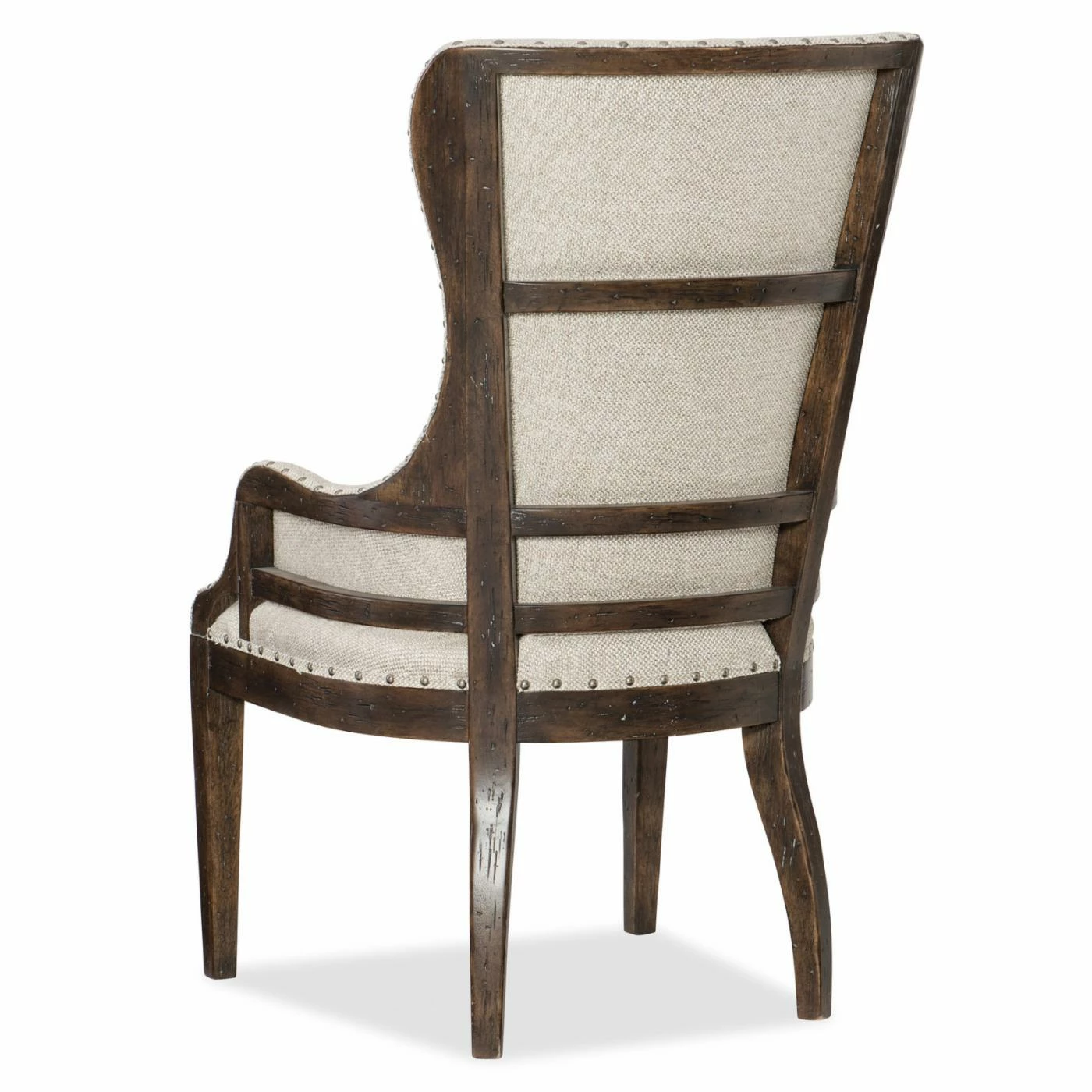 Rustic chic and inviting, thisHooker Furniture Roslyn County Upholstered Solid Back Nailhead Trim Dining Host Chair is in classic farm-to-dΓ©cor style. The exposed beams in dark walnut contrasting with the soft creamy upholstered seat and back create drama and evoke authentic trusses in reclaimed barns.Β Β Β Β