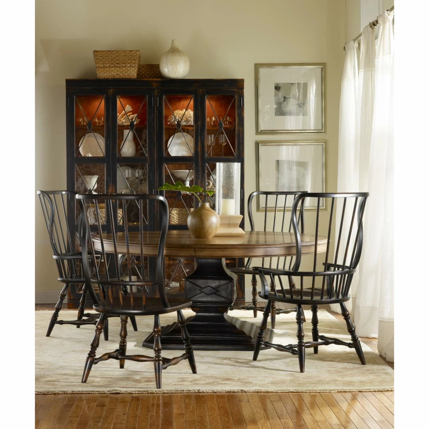 - Features spindled legs