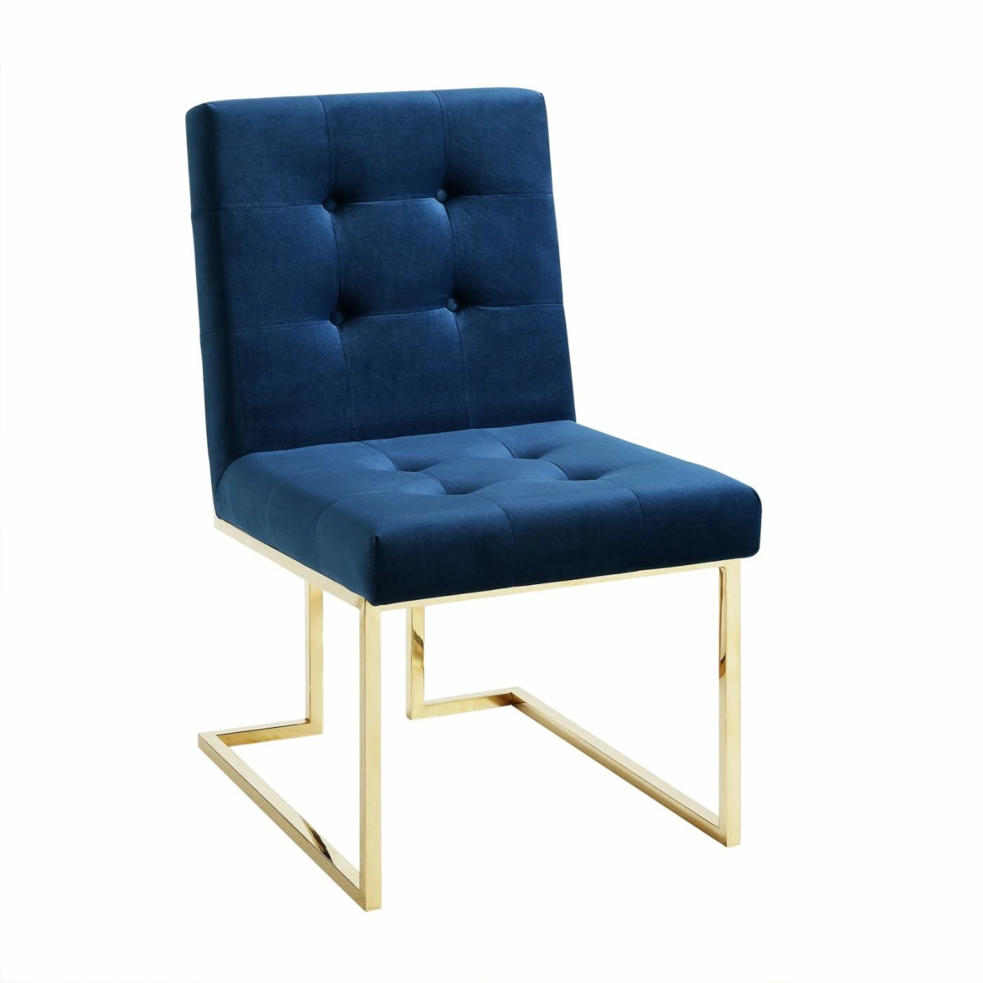 Surround your glamorous dining table with the Inspired Home Stevenson Upholstered Dining Side Chair – Set of 2. This armless chair is supported by a metal frame with a high-shine gold finish. The seat and back are button tufted and covered in a rich velvet fabric that is incredibly soft to the touch. The armless design makes them great for use as side chairs. Assembly required.