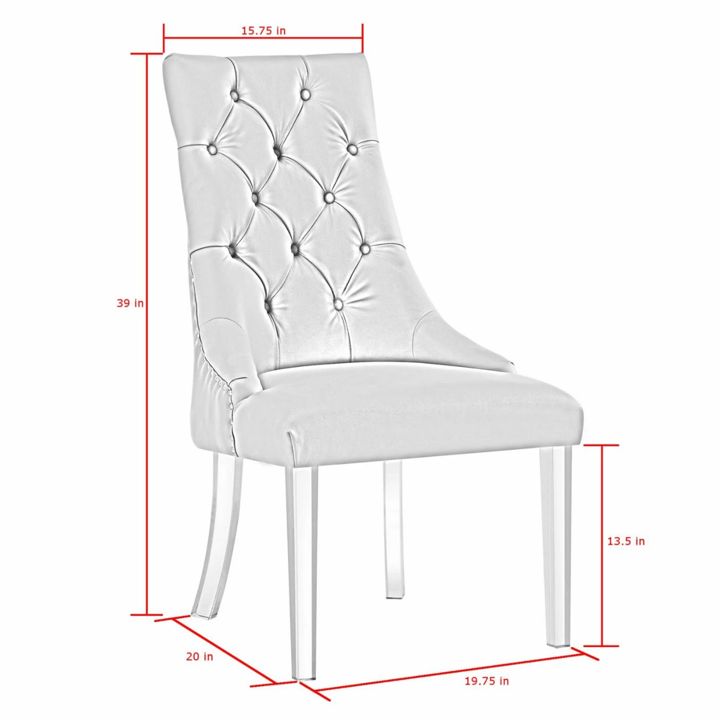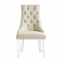 Elevate your dining experience by surrounding your table with the Inspired Home Valeria Upholstered Dining Side Chair – Set of 2. High-density foam cushions and tufted button upholstery make them comfortable enough for the longest of dinner conversations. Clear acrylic legs support these chairs and offer a glamorous touch to the design. Choose from available color options to make it yours. Assembly required.