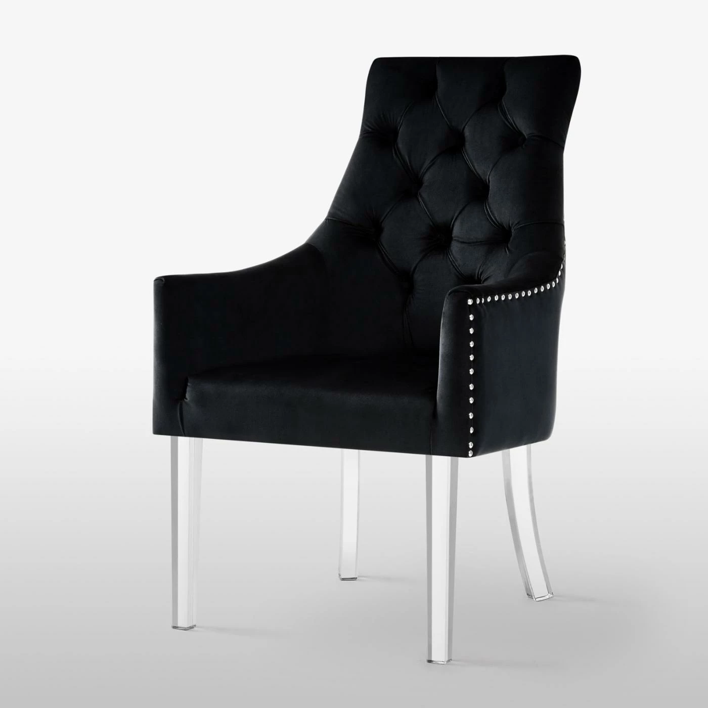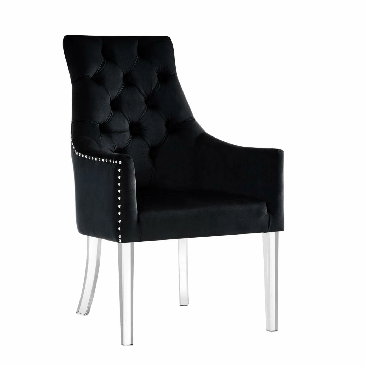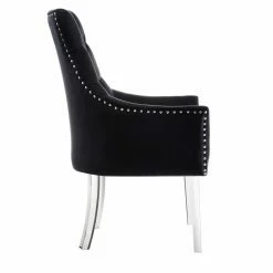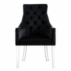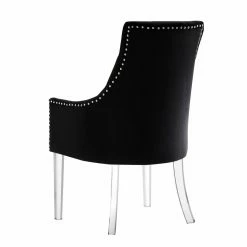 Make your modern dining room more glamorous with the addition of the Inspired Home Valeria Velvet Upholstered Dining Arm Chair – Set of 2. These stylish and comfortable armchairs offer velvet fabric enhanced with nailhead trim and button tufted accents. Clear acrylic legs offer a gleaming finishing touch and durable support. Choose from available color options to make it yours. Assembly required.
