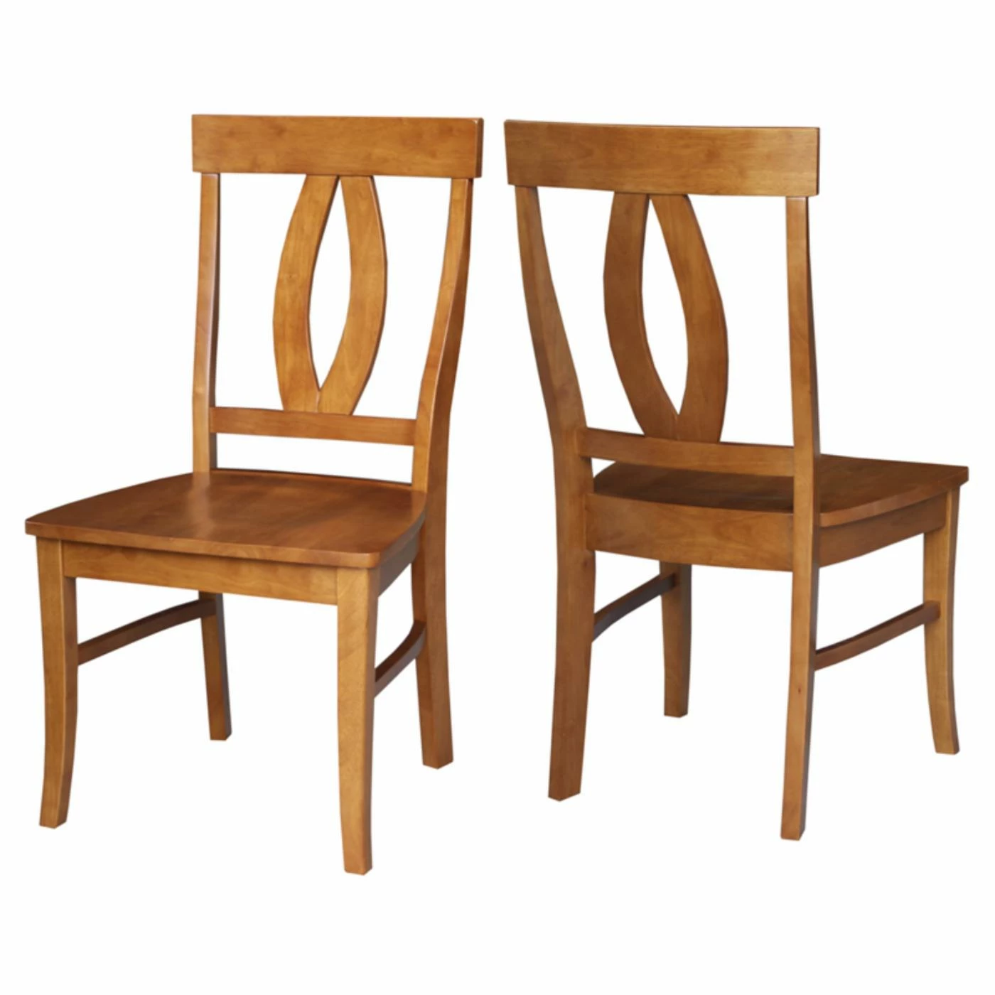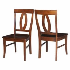An exciting update to a classic design, the International Concepts Cosmo Verona Dining Chairs – Set of 2 features charming details and comes in a variety of finish options guaranteed to elevate your home dΓ©cor. This expertly crafted two-piece set is crafted from solid parawood with box seat construction for quick and easy assembly. Each chair boast subtly flared legs, a contoured wood seat for added comfort, and a splat back design thatβs split down the center and features vertical slats with graceful curves for an even more striking presentation.
