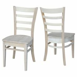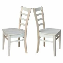 If you’ve been looking to upgrade your dining chairs to something fresher, more fashionable, and just plain more fun, look no further than the International Concepts Emily Side Chair – Set of 2. Slender silhouettes, tapered legs, and classic ladder-style backs create a look that’s part-traditional, part-transitional, and completely stylish for most any meal. Solid parawood construction, also known as rubberwood, is available in choice of finish, which allows for visible woodgrain throughout. Plus, the durable box seat design provides easy, worry-free assembly.