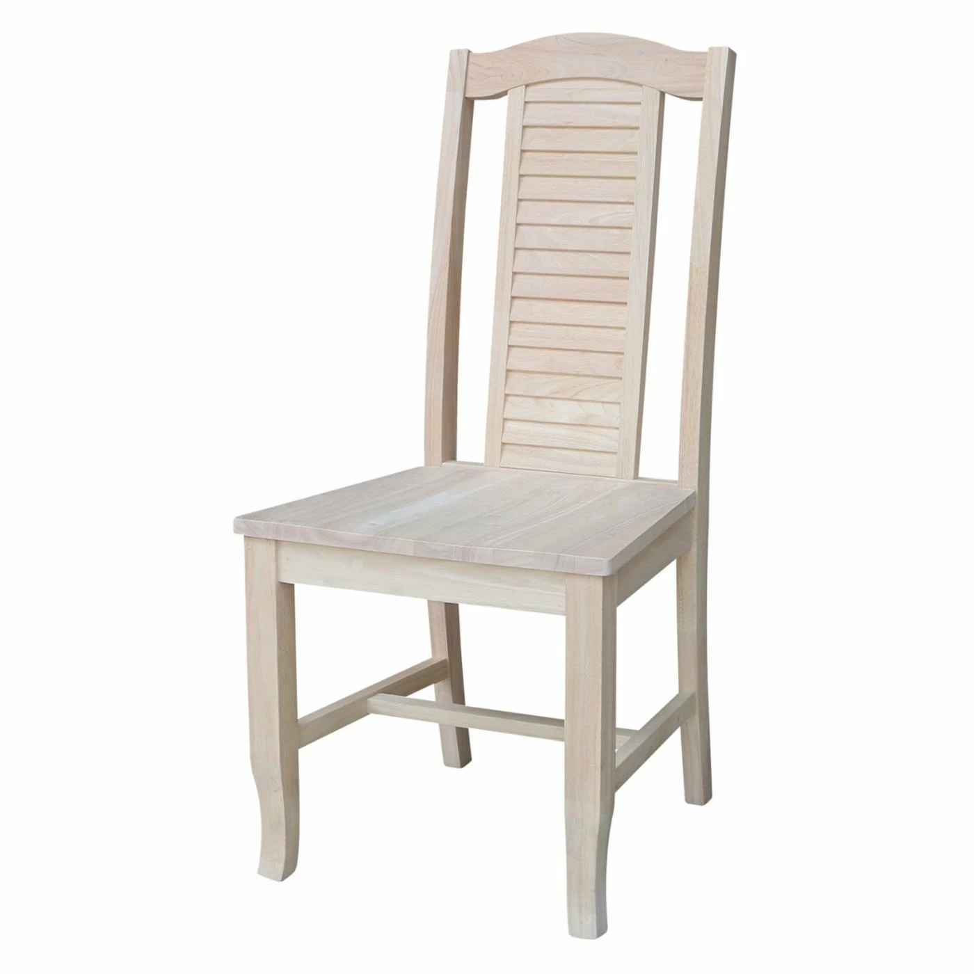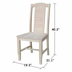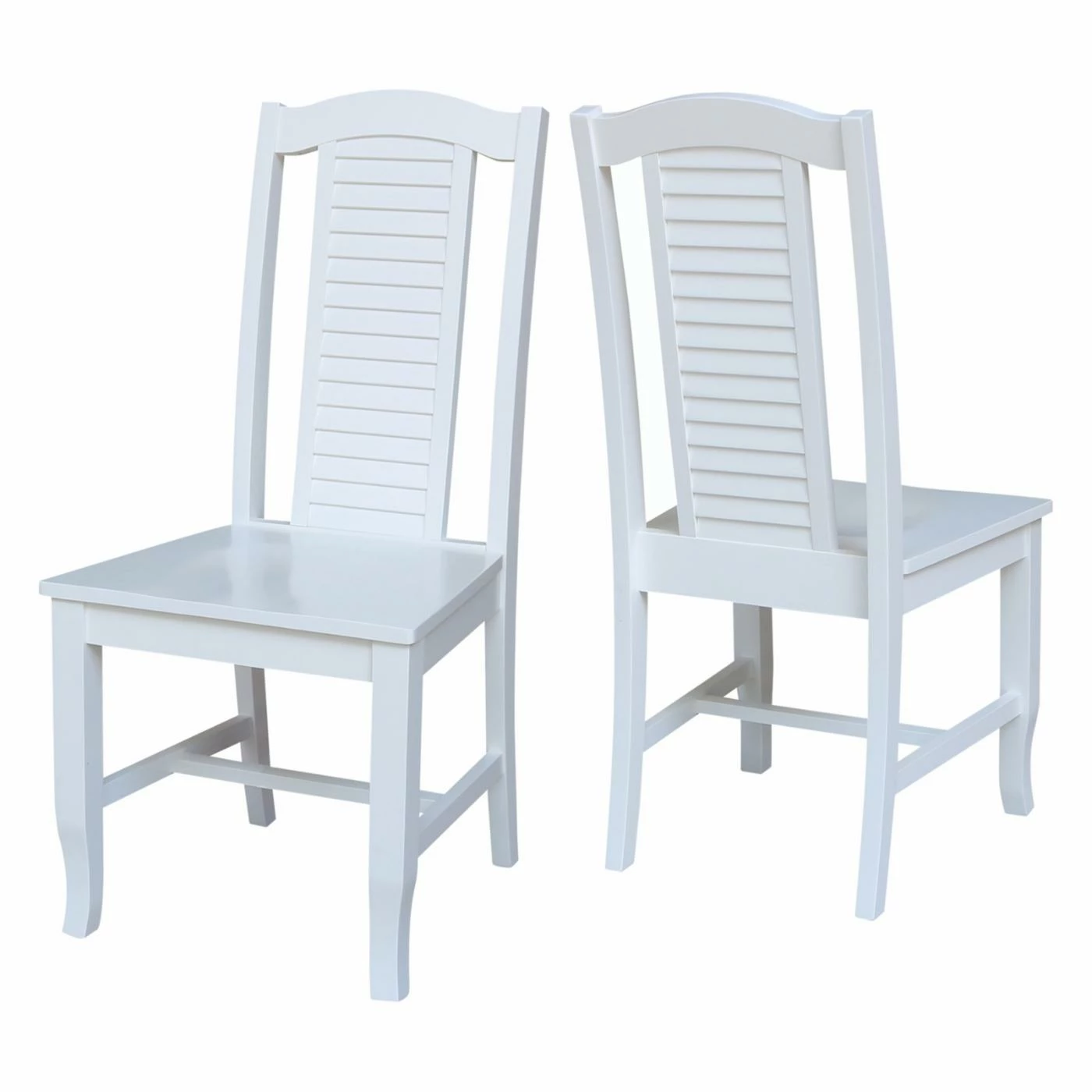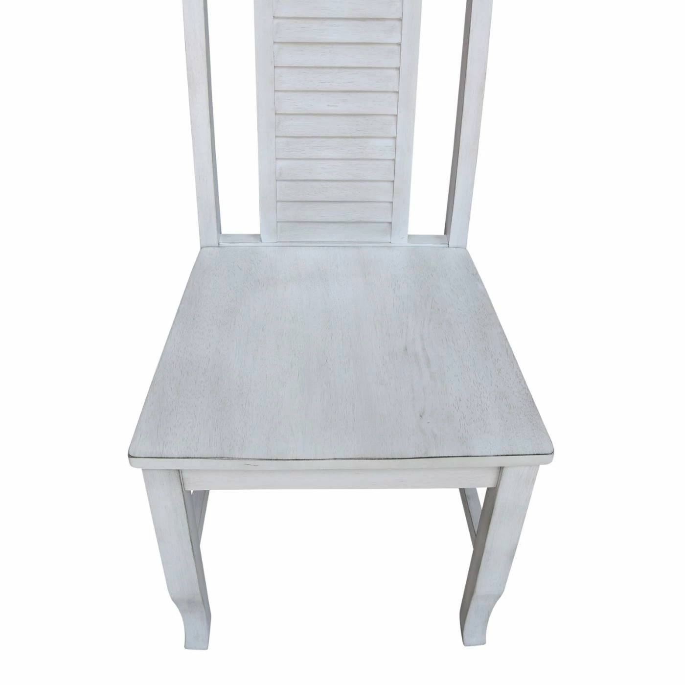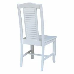 Add a coastal cottage vibe to your dining space with the International Concepts Seaside Dining Side Chair – Set of 2. This set of two dining chairs is crafted from hardwood with a splat back design featuring a shutter-style insert. Choose from available finish options to best suit your space.
