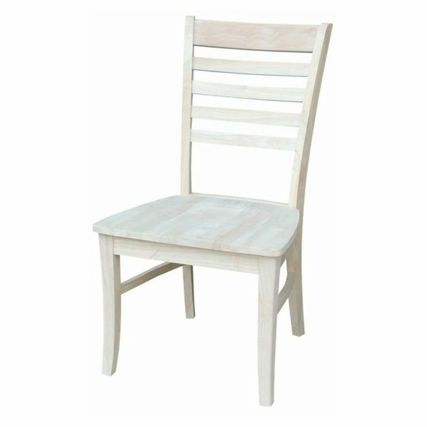 Projecting an air of straightforward, no-nonsense style, we like to think of the International Concepts Roma Ladder Back Dining Chairs – Set of 2 as the Tommy Lee Jones of chairs. This handsome and functional piece is crafted from unfinished parawood with a wide, contoured seat and a gentled angled ladder-style back. Parawood is also known as rubberwood, and it’s very popular for furniture construction because of the vivid grain and strength of the material. This strength will make this handsome set of 2 chairs ideal for everyday use.
