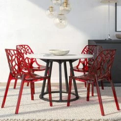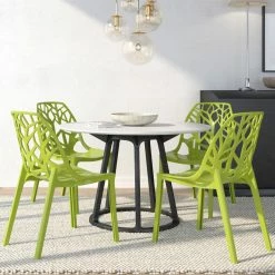 A stylized tree design gives the LeisureMod Cornelia Modern Dining Chair its contemporary appeal. This modern dining chair has an armless design with straight legs for a minimal look. A durable plastic frame gives comfort that is versatile, and comes in your choice of available color options. Choose from set options for a perfectly crafted seating area.