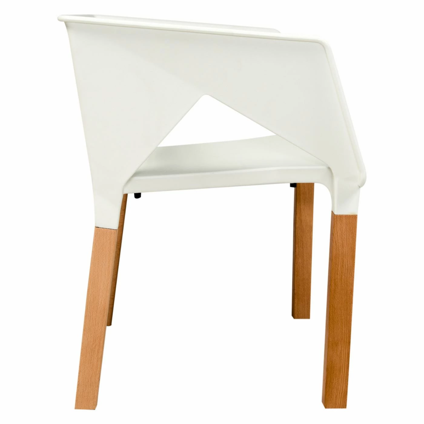 A chic geometric cut-out design gives the LeisureMod Elkton Modern Dining Chair with Wooden Frame contemporary flair. This sturdy chair has natural wood legs that support the molded plastic seat. Clean lines and sharp angles give this modern dining chair up-to-date style to enhance your home. A crisp white finish works with any dΓ©cor. Choose from a single chair or set option to outfit your dining space.