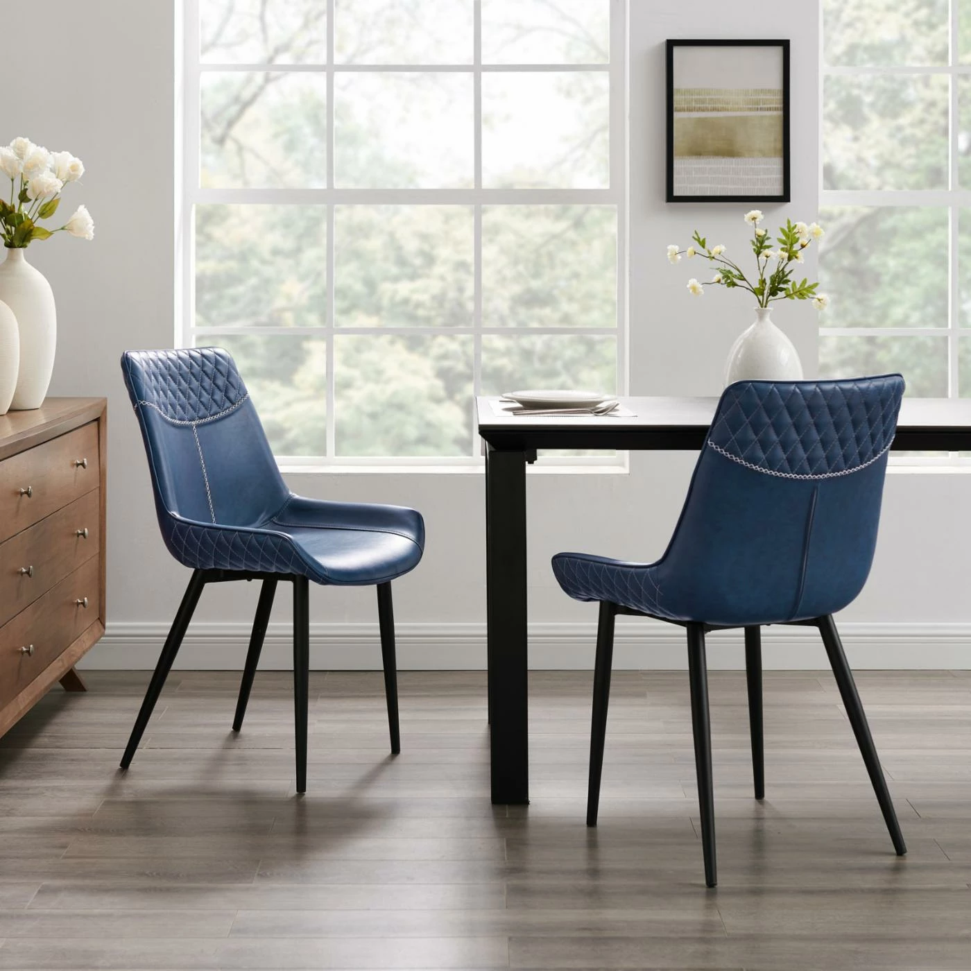 Add mid-century flair to your dining space with the Linon Edler Upholstered Dining Parson Chair – Set of 2. This pair of parson dining chairs boasts versatile-hued upholstery with contrasting white stitching. Its legs feature a black hue and are slightly flared for enhanced stability. Foam cushioning makes these chairs as comfortable as they are stylish.