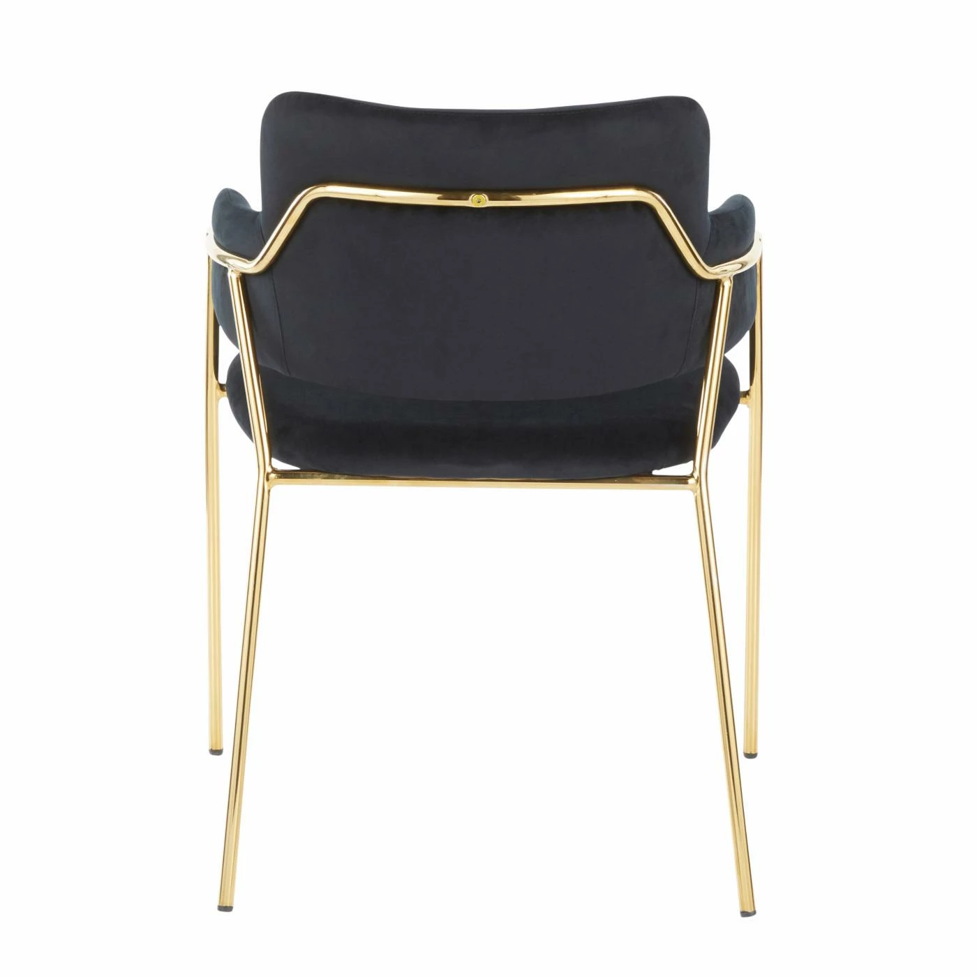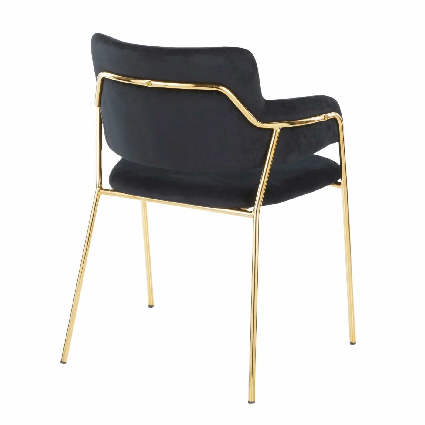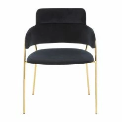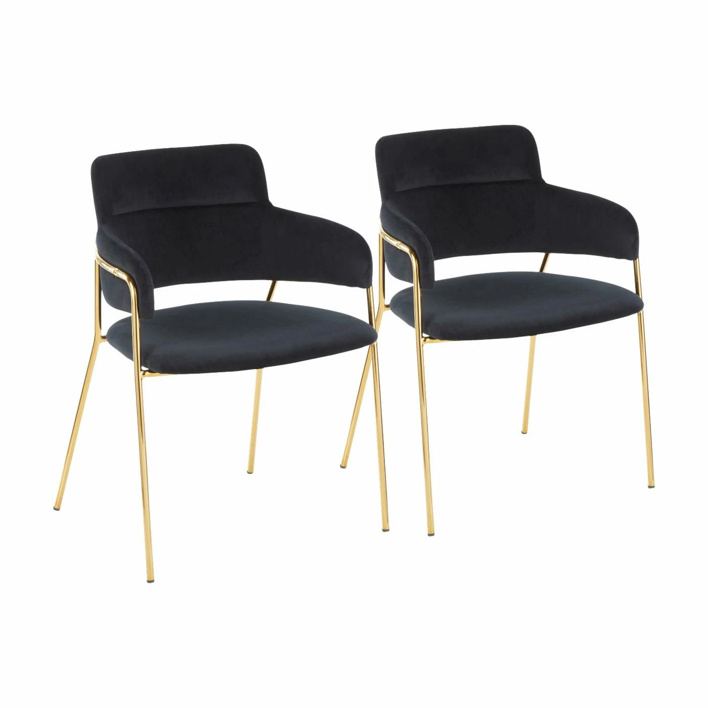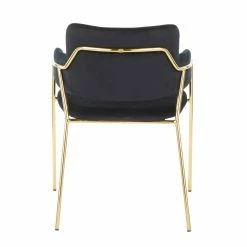 For each head of your modern dining table, add the LumiSource Napoli Contemporary Dining Arm Chair – Set of 2. These two chairs feature luxe metal frames with a bright gold finish for some shine in your dining space. The padded seats and tall headrests are covered in soft velvet upholstery in your choice of available color to match your palette. You can also use these glam dining arm chairs as added seating in a modern living room.