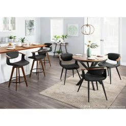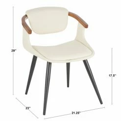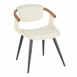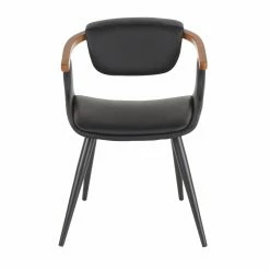 The mid-century charm of the LumiSource Oracle Mid-Century Dining Arm Chair combines sturdy construction with aesthetic appeal. A walnut wood pressed grain bamboo frame is accented by faux leather upholstery and stylish metal legs. Available in a variety of color combinations.