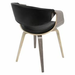 For an updated take on mid-century design, the LumiSource Symphony Mid-Century Modern Dining Chair is graced with comfortable curves. The bentwood design includes a seat that curves up to include curled arms and tapered legs. Horizontal-tufted faux leather upholstery covers the backrest and seat of this dining chair. Customize the look by choosing from available upholstery colors and finish options.