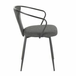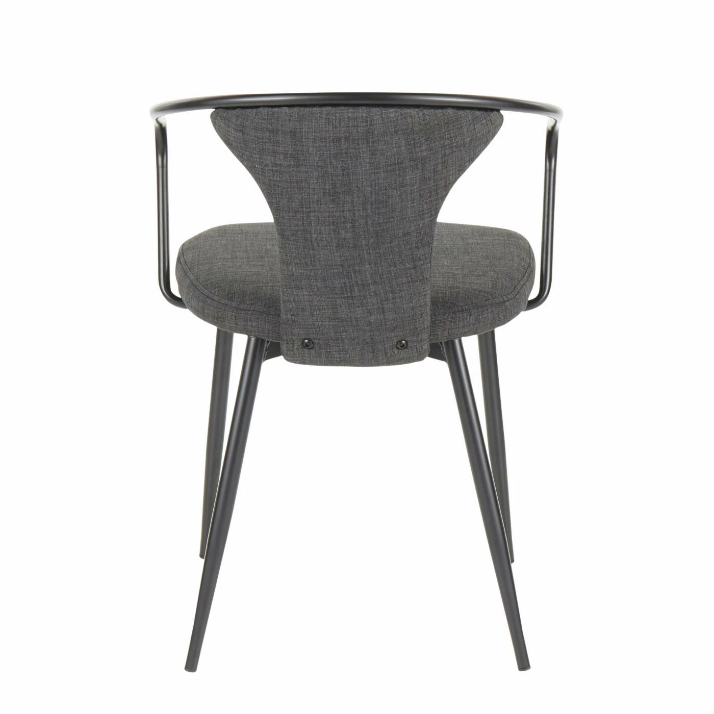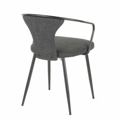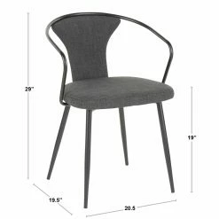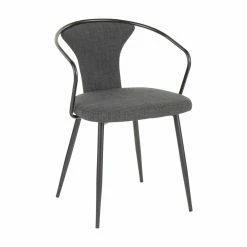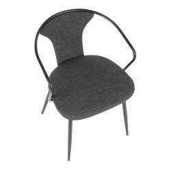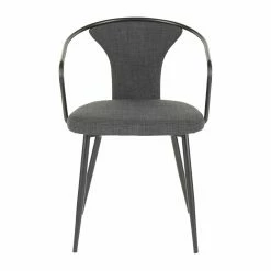 Modern-industrial style can still be comfortable, as with the LumiSource Waco Industrial Upholstered Splat Back Dining Arm Chair. The rounded back and angled legs are made of durable steel with a versatile dark gray finish. The seat and back are padded and covered with a classic woven upholstery in your choice of available color. Small details are important – the back and seat pieces are connected by two rivet accents. Add this arm chair to a wood or metal dining table or use in your industrial or mid-century living room as an accent chair.
