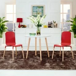 The chairs are crafted of solid beech wood in your choice of finish. A steel tube chair base adds extra durability, and foot caps help prevent floor scratching. Kitchen, breakfast nook, dining room, even a studio or home office – you just may need to order more than one set.