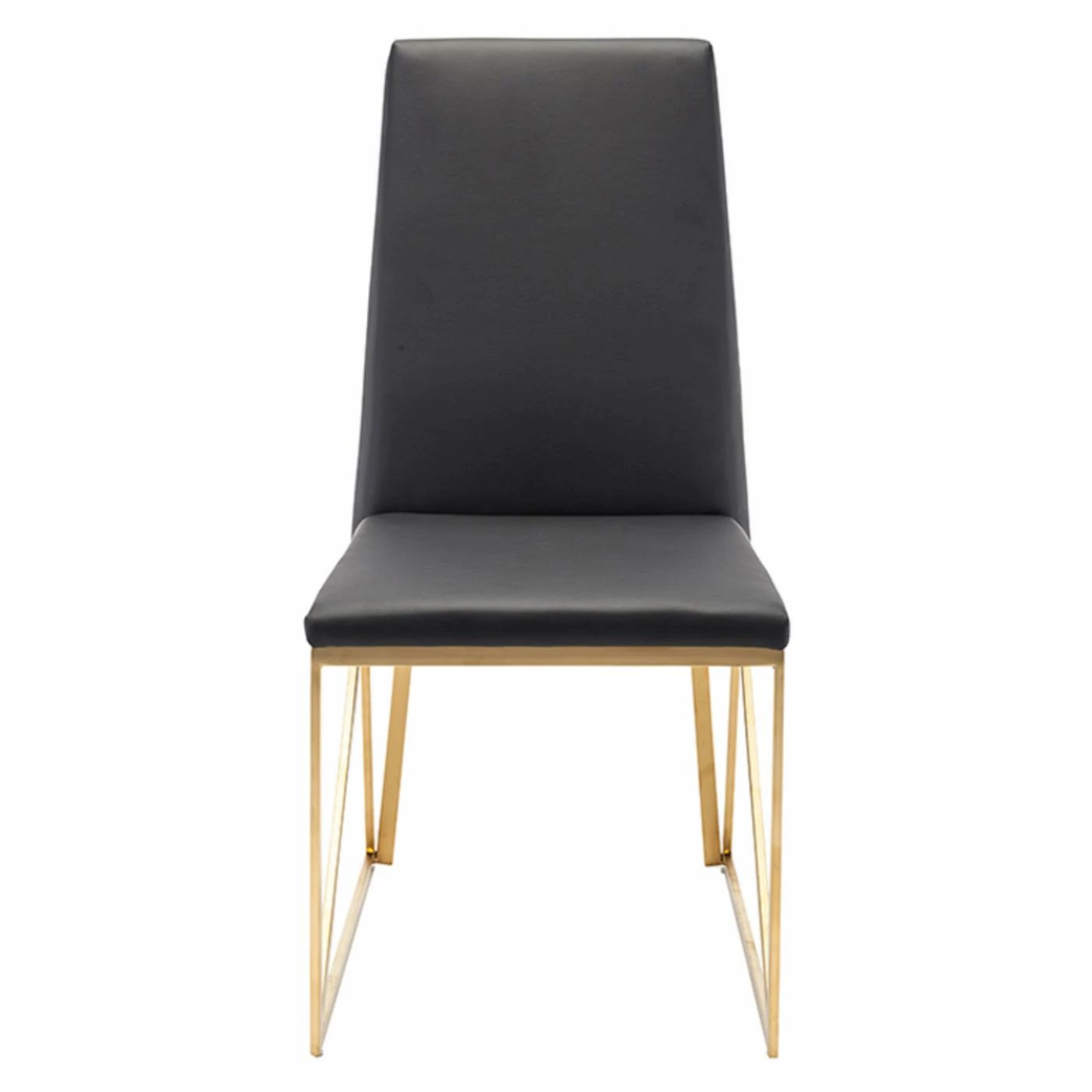 Angular side details and a gold finish on the bases make this Nuevo Caprice Gold Side Chair – Set of 2 a glam addition to your dining room. The set includes two dining side chairs upholstered in easy-care faux leather. Customize the look by choosing from available upholstery colors.