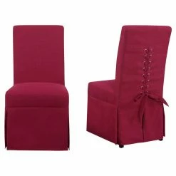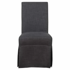 The lace-back design on the Picket House Furnishings Hayden Parson Dining Chair – Set of 2 adds a tailored accent to your dining room set. These chairs feature classic parsons lines made of solid wood. The black finish complements most dΓ©cor styles for easy pairing. The skirted bottom takes this chair from casual to fancy. Choose from the available upholstery color options to suit your style.