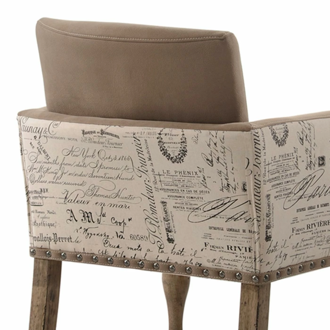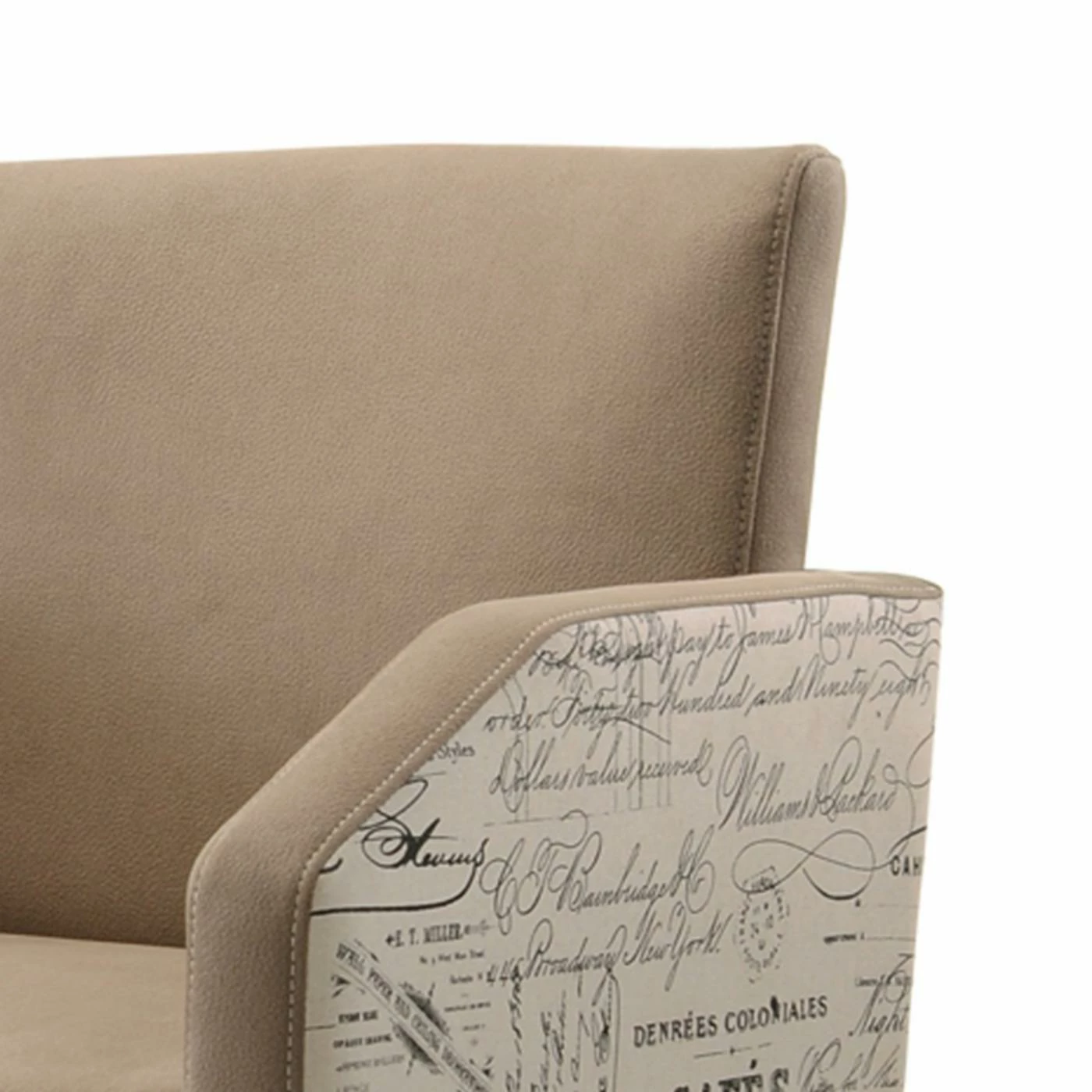 - script printed upholstered chair back and arms