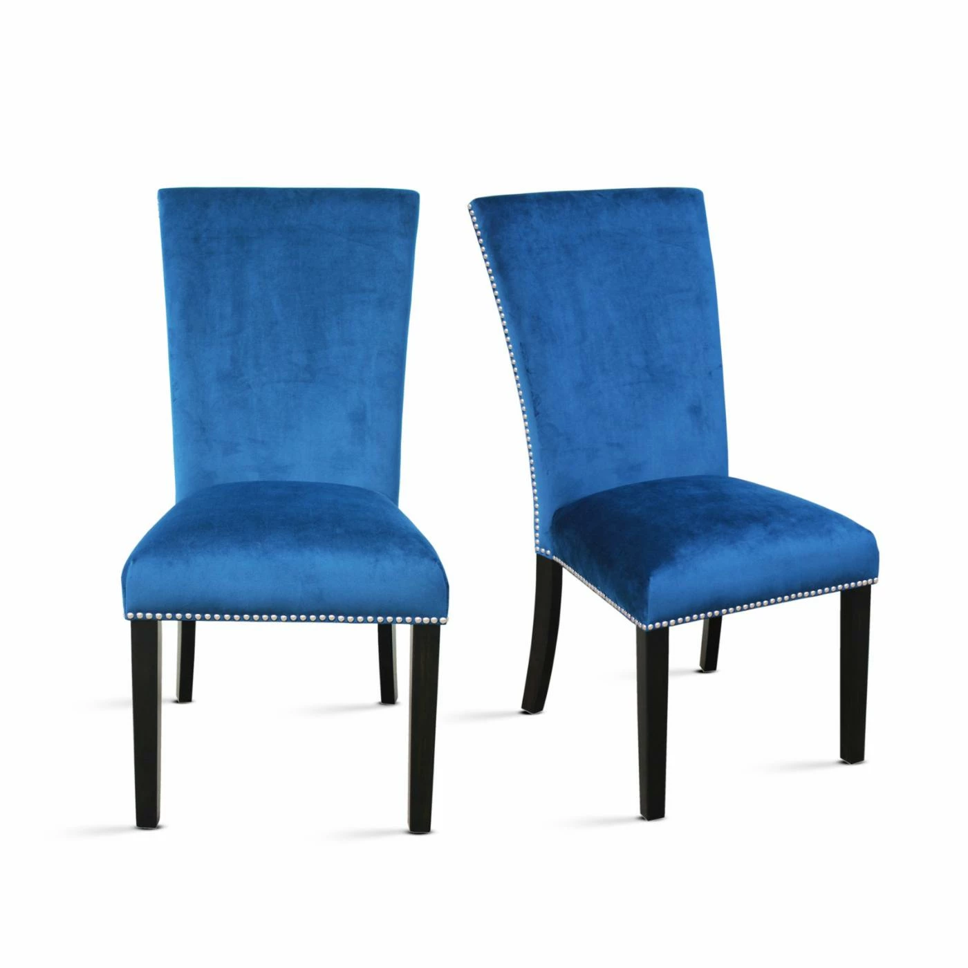 The straightforward shape of the Steve Silver Co. Camila Velvet Dining Parson Chair with Nailhead Trim – Set of 2 gives you plenty of time to enjoy the deep cushioning and playful mix of textures. This chair lets you sink into a wide, deeply padded with a tall, flared backrest. Thick foam padding is covered with a super-soft velvet in a deep shade of blue. Silver nailhead trim adds a metallic glint with a unique texture to the design. The interior frame is crafted from solid hardwood with an espresso finish.