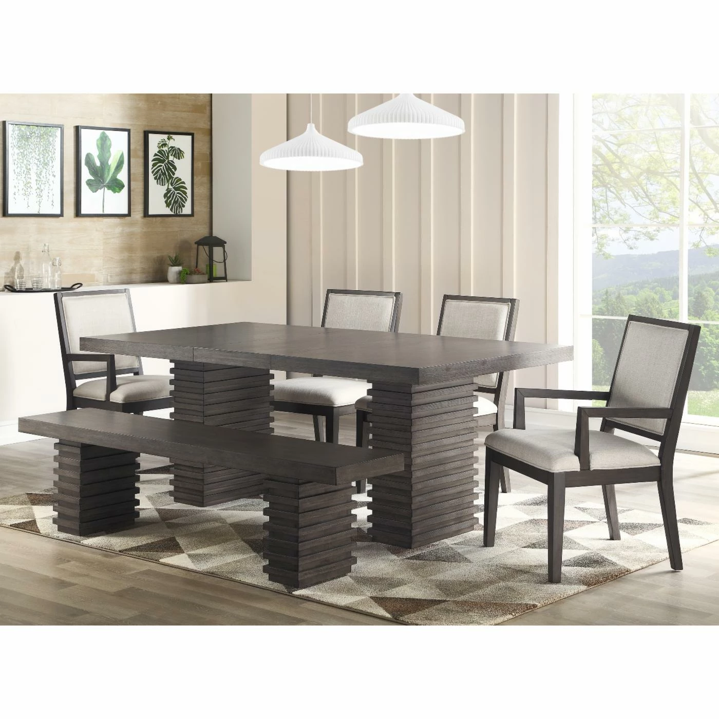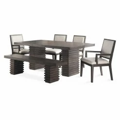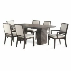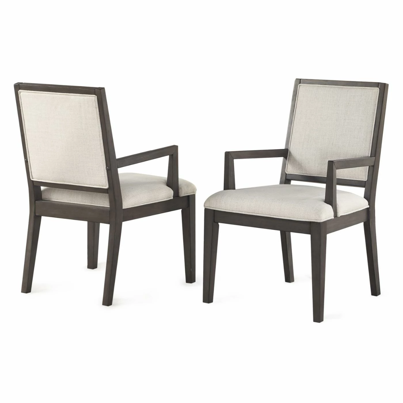 Add a touch of contemporary style to your dining room or kitchen with the Steve Silver Co. Mila Dining Arm Chair – Set of 2. Each arm chair is constructed of solid rubberwood, mango wood, and acacia wood. The chair arms and frames are in a hand-applied washed gray finish that nicely complements the beige polyester upholstery on the seats and backs. Protective glides prevent damage to your floor. The angled arms offer comfort and support as you enjoy your meal. With their neutral finish, these chairs go with a variety of color schemes. This set includes two dining chairs. Assembly required.
