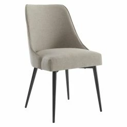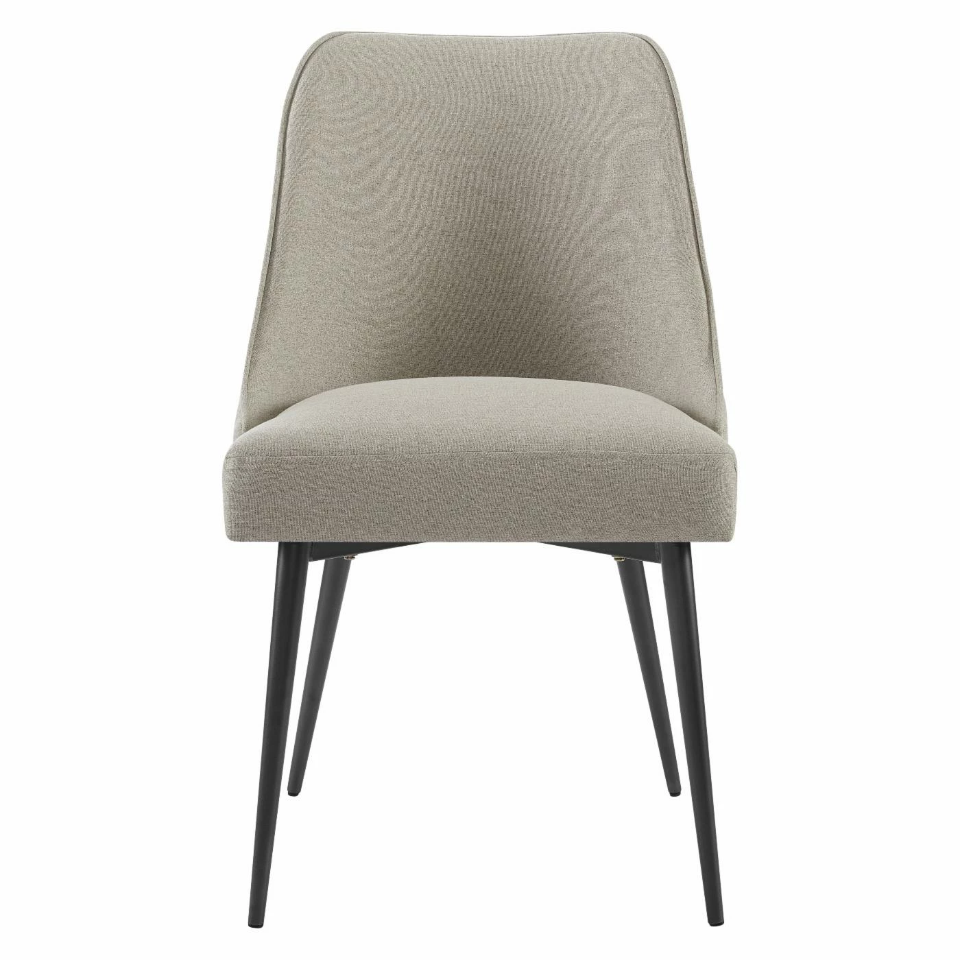 Add a touch of modern style to your dining room or kitchen with the Steve Silver Co. Olson Dining Side Chair – Set of 2. These two chairs have iron legs in a dark metal finish. The foam-padded seats are upholstered in khaki polyester. Protective glides prevent the chairs from scraping your floors. With their neutral finish and contemporary design, these chairs are sure to complement a variety of home dΓ©cor styles. Some assembly required.