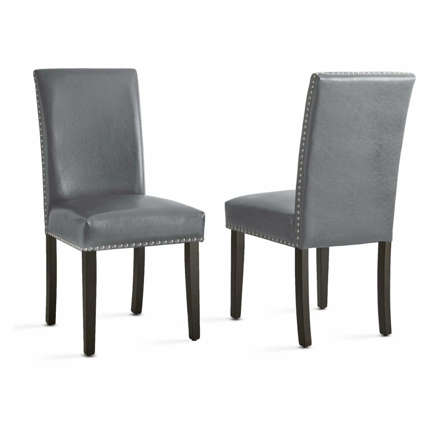 The understated charm of the Steve Silver Co. Verano Upholstered Dining Parson Chair with Nailhead Trim – Set of 2 is going to be a welcome addition to any well-heeled dining room. This set of two chairs features ebony-finished frames made from solid hardwood. Thick layers of foam padding add comfort and body to the faux-leather upholstery. A single row of chromed nailhead trim adds a touch of texture and a dash of glam to the design.