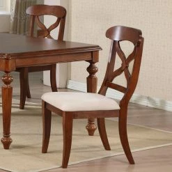 The Sunset Trading Andrews Dining Side Chair – Set of 2 are deep-seated chairs with contoured backs that are both pleasing to the eye and supportive to the spine. The seats are cushioned in high-density foam that forms to your unique shape for a superior level of comfort not found in most traditional side chairs. Lastly, these Asian Ramon hardwood chairs are available in your choice of finishes. Measures 21W x 19D x 38H in. Some assembly is required.