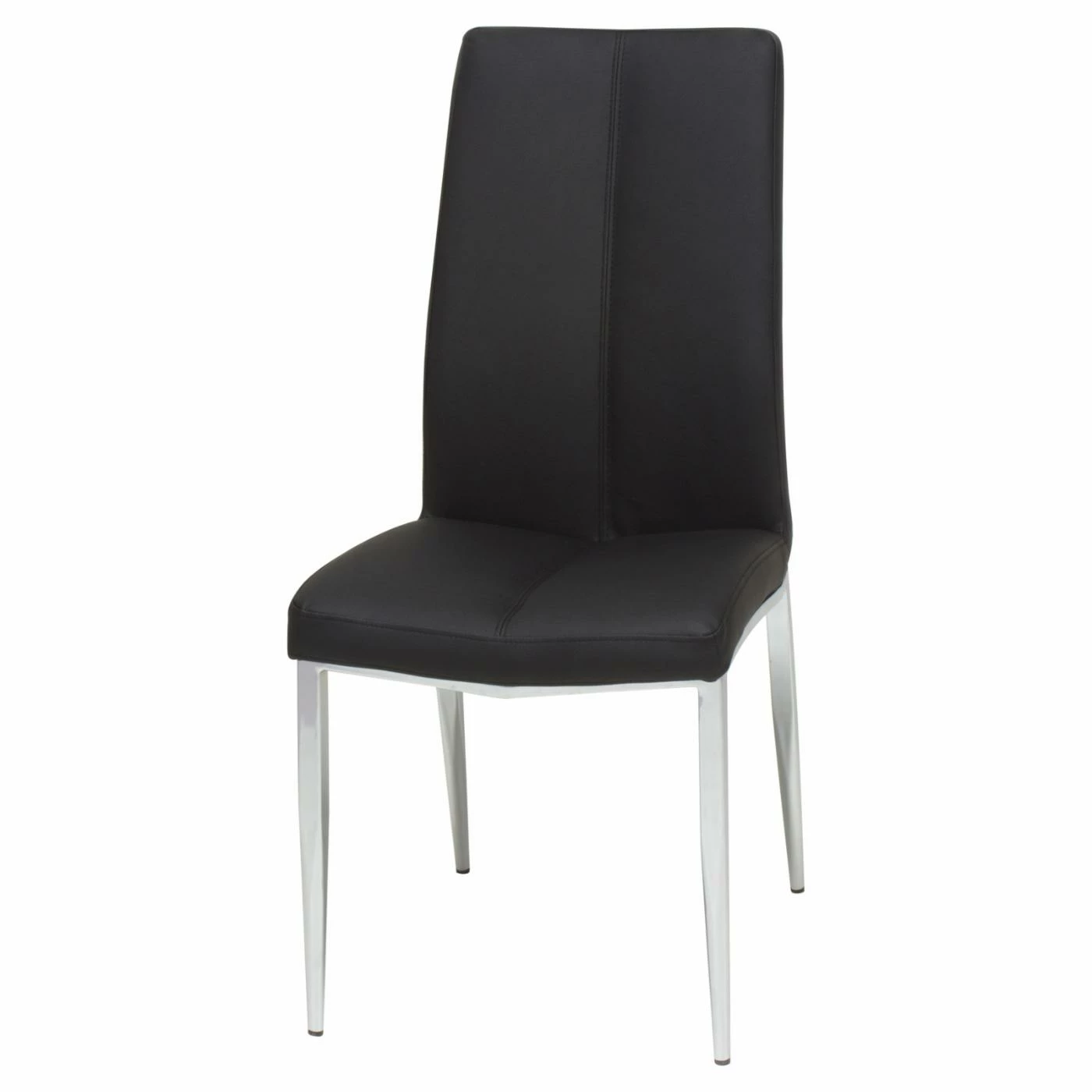 Decorative top stitching adds detail to the Chintaly Abigail Curved Back Dining Side Chair – Set of 4. Black faux leather upholstery pairs beautifully with slim, tapering chromed steel legs. This set includes four matching side chairs.