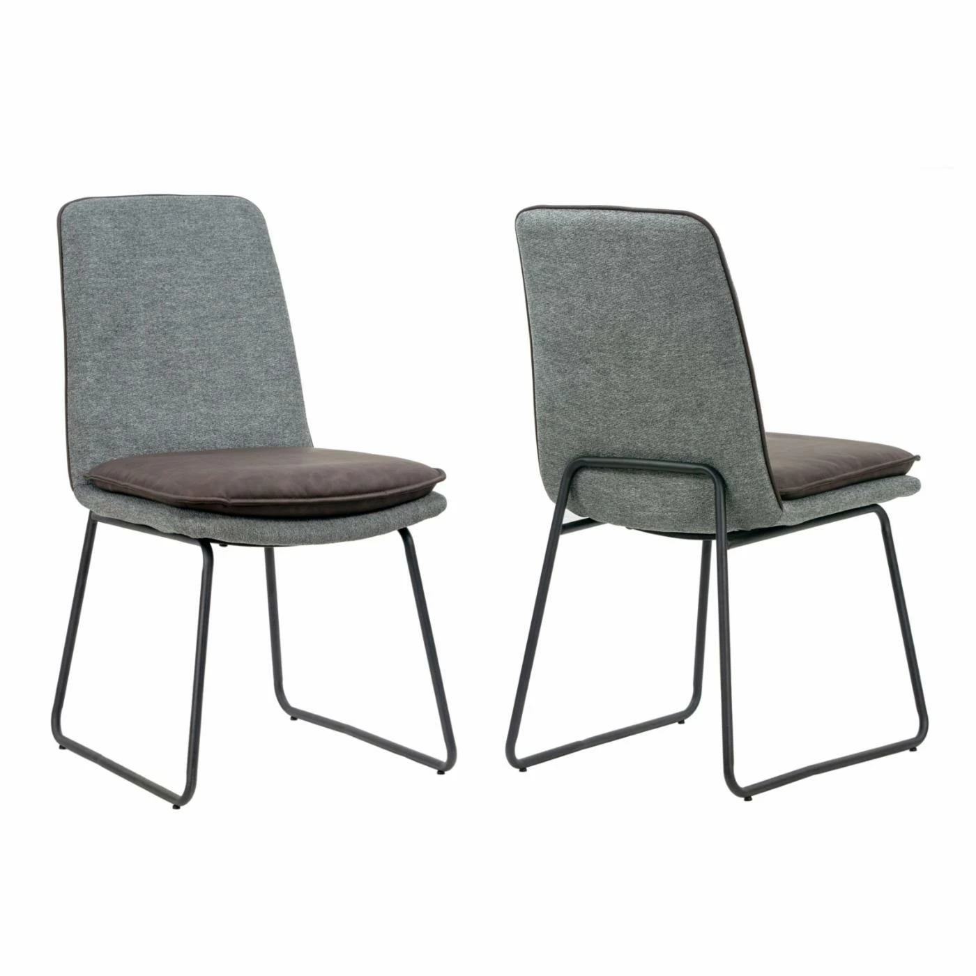 With its clean lines and neutral coloring, the Glamour Home Arch Upholstered Dining Parsons Chair with Brown Cushion – Set of 2 is sure to bring cool, contemporary style to your dining room. Each armless dining chair features U-shaped metal legs in a black finish. The seats are upholstered in soft gray fabric. Attached seat cushions upholstered in brown, faux leather add a rustic vibe to each chair. Some simple assembly is required.