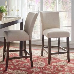 Meals at your breakfast bar or counter-height dining table will be comfortable affairs when you’re seated on the Chelsea Lane Counter Height Dining Side Chairs – Set of 2. Spring suspension ensures that the thick padded seats provide optimal support, and footrests are integrated into the design of the sturdy wood bases. Clad in linen upholstery, the dining chairs have an elegant, timeless look.