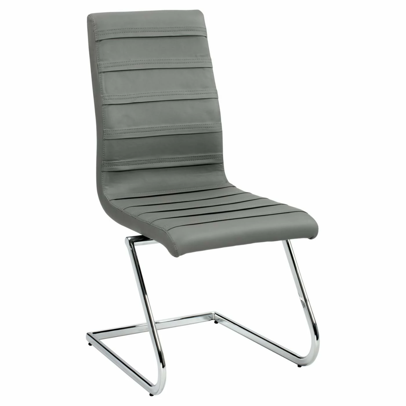 Bring home the look of a modern classic with the Chintaly Janet Brewer Style Dining Side Chairs – Set of 2. The shiny chrome base provides the perfect contrast to the soft gray, faux-leather upholstery. Stitched details really put the look over the top.